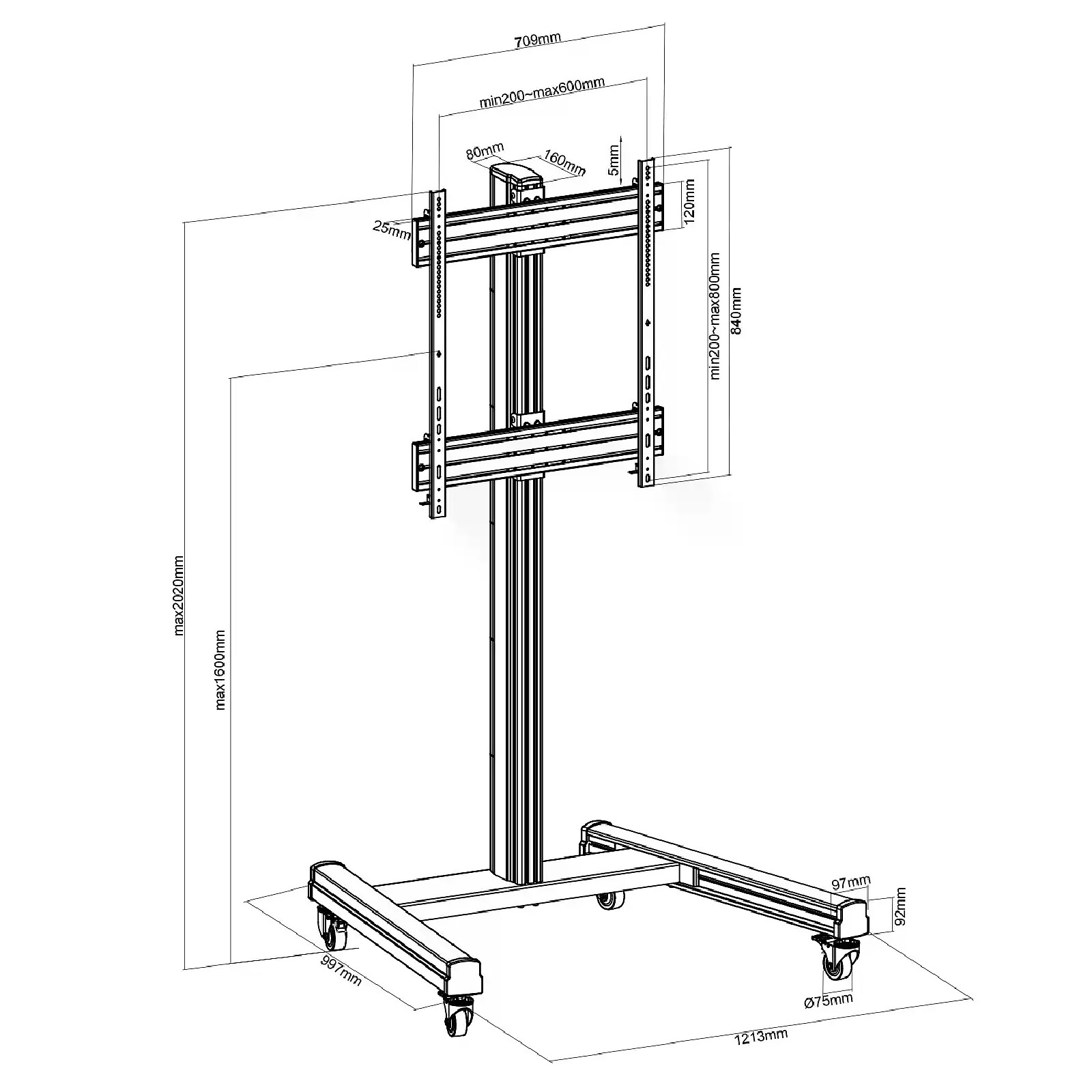 Support sur roulettes pour écran TV 60''-100'' - Mode portrait
