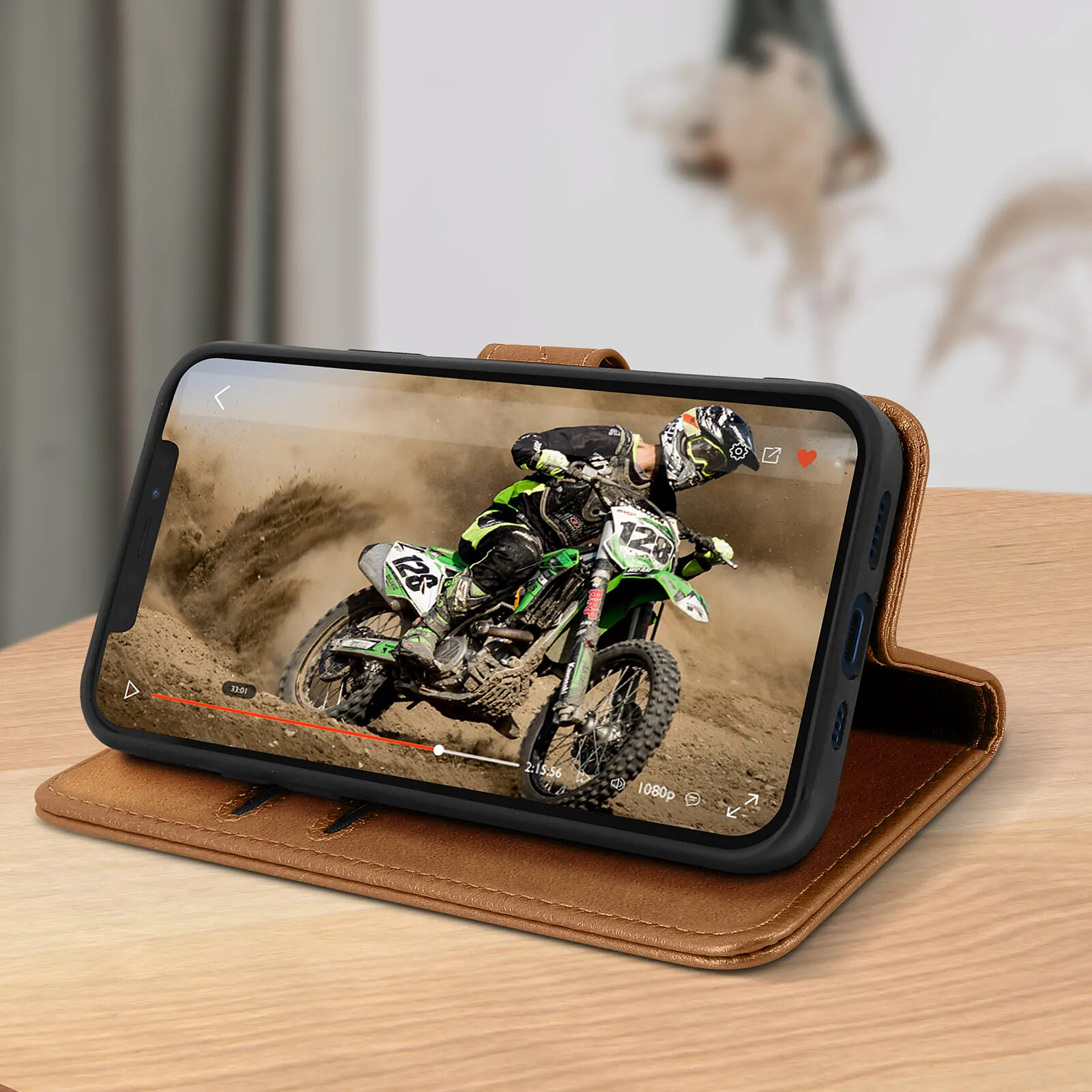 Avizar Étui Apple iPhone 12 Mini Protection avec Porte-carte Fonction Support marron |
