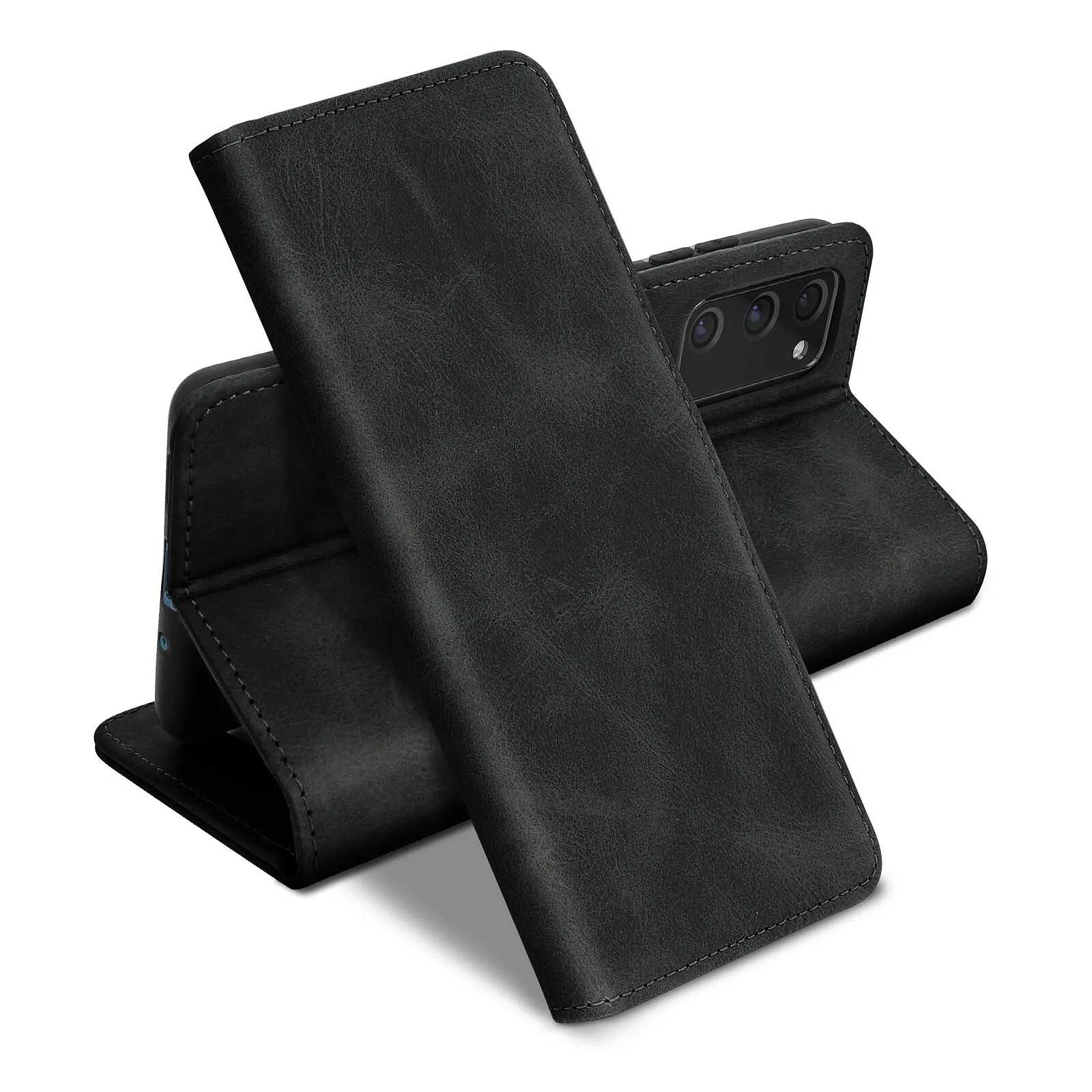 Étui Samsung Galaxy S20 FE, alliant protection et praticité. Revêtement en éco-cuir au style vintage. Clapet avec espaces de rangement pour cartes et billets de banque. Fonction support vidéo. Fonctionnalités accessibles. Coque de maintien souple.