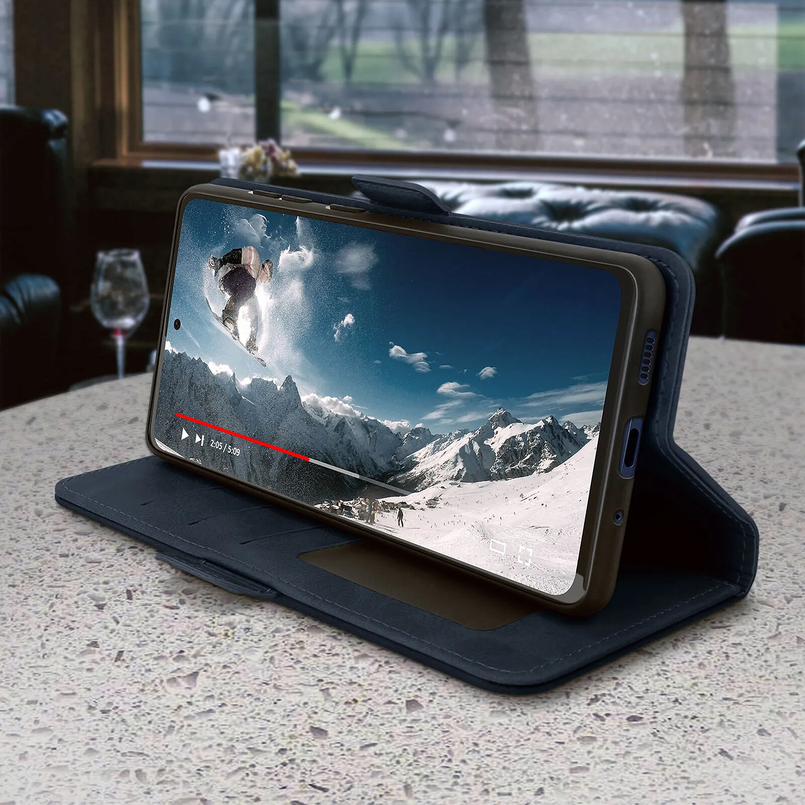 Étui Samsung Galaxy S20 FE, alliant protection et praticité. Revêtement en éco-cuir au style vintage. Clapet avec espaces de rangement pour cartes et billets de banque. Fonction support vidéo. Fonctionnalités accessibles. Coque de maintien souple.