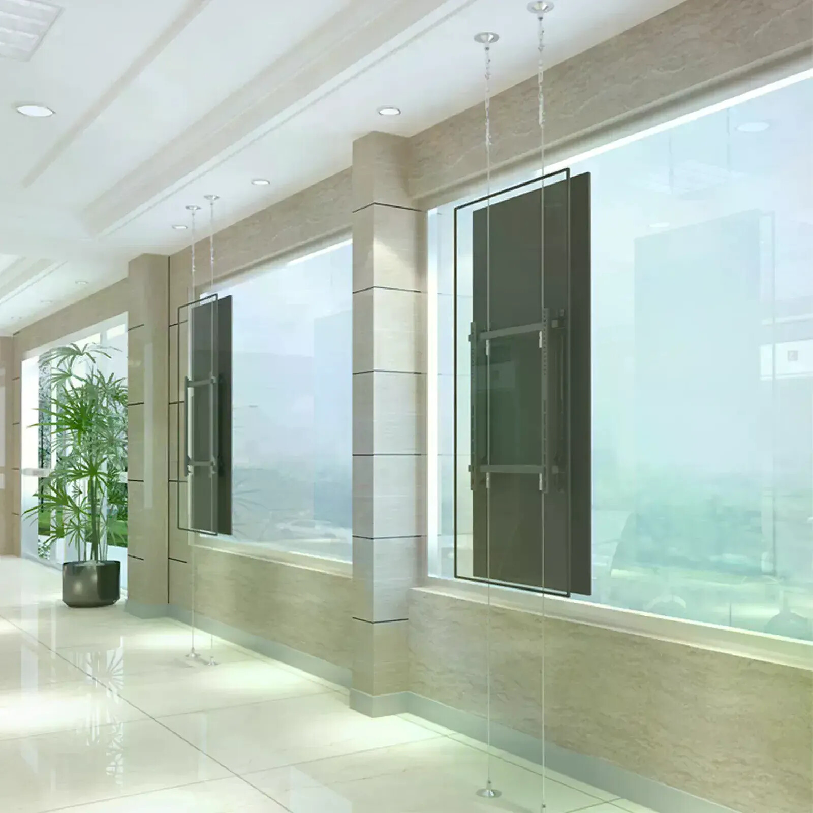 Libérez l'esthétique de votre espace avec les supports filaires pour écrans TV de Kimex, spécialement conçus pour les écrans de 42 à 75 pouces. Avec une conception filaire moderne, ces supports ajoutent une touche élégante à votre environnement tout en offrant une stabilité optimale pour vos écrans. Robustes, ajustables et faciles à installer, les supports filaires de Kimex créent une expérience visuelle exceptionnelle, mettant en valeur la beauté de votre écran. Transformez votre espace avec ces supports filaires - l'alliance parfaite entre design contemporain et performance avancée.Le support filaire KIMEX 032-2023 est une solution professionnelle de montage d'affichage idéale pour les vitrines de magasins. Ce support repose sur un mécanisme de fixation du sol au plafond sur câbles pour accueillir deux écrans et moniteurs dos à dos de 42" à 75" répondant au standard VESA (100x100mm min, 400x600mm max), jusqu'à 30 Kg. Conçu dans une optique esthétique et polyvalente, ce support ingénieux est suspendu à deux câbles robustes et réglables en hauteur (300 cm max) pour s'adapter à son environnement en garantissant une sécurité parfaite à l'installation. Ce mécanisme permet de régler les écrans en hauteur et de les positionner en mode portrait ou paysage pour s'adapter parfaitement à votre besoin. Ces caractéristiques font du support KIMEX 032-2023 un outil de communication professionnel parfaitement adapté à un large éventail d'applications commerciales. Avantages : Mécanisme sur câbles discret et sécurisé, Hauteur ajustable jusqu'à 3 m, Ecrans en mode portrait ou paysage et réglables en hauteur, Possibilité de régler le niveau parallèle des écrans pour un rendu parfait.