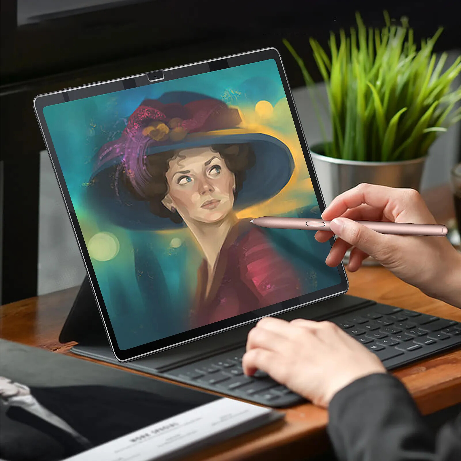 Film flexible Samsung Galaxy Tab S7 Plus 12.4, S7 FE et Tab S9 Plus et S10 Plus Flexible avec nano-revêtement. Texture rugueuse, donnant l'impression d'écrire sur du papier avec un crayon. Finition mate anti-reflets. Anti-rayures et anti-traces. Confort inchangé.