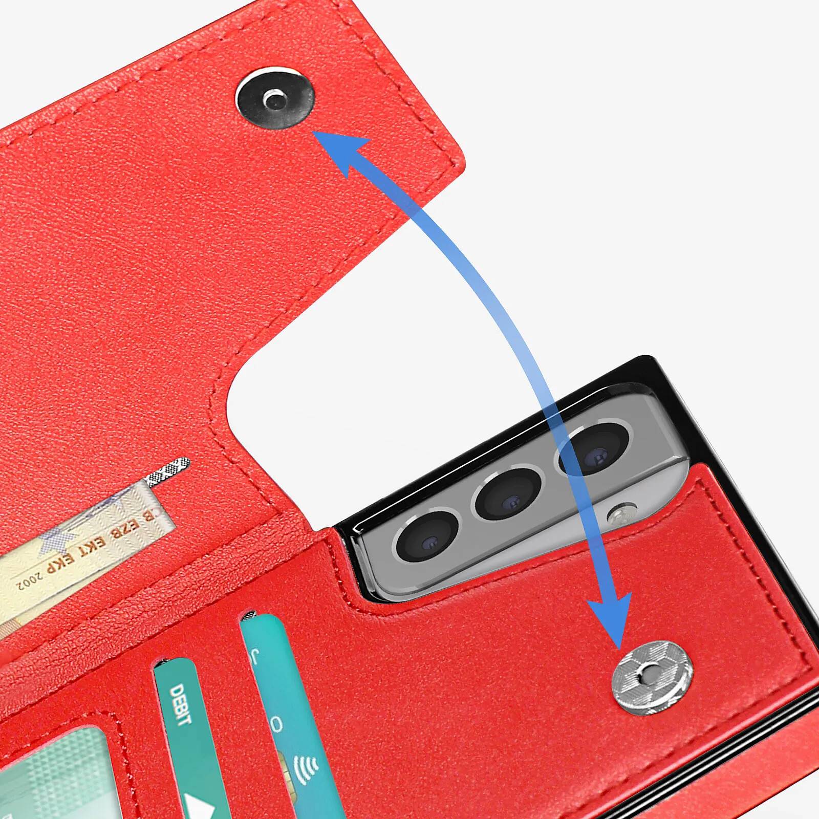 Protection Samsung Galaxy S21 Plus. Coque cordon + étui portefeuille. Avec fonction support et espaces de rangement. Une lanière amovible est incluse. Clapet avec double fermoir magnétique. Bords surélevés. Fonctions accessibles et boutons redessinés.