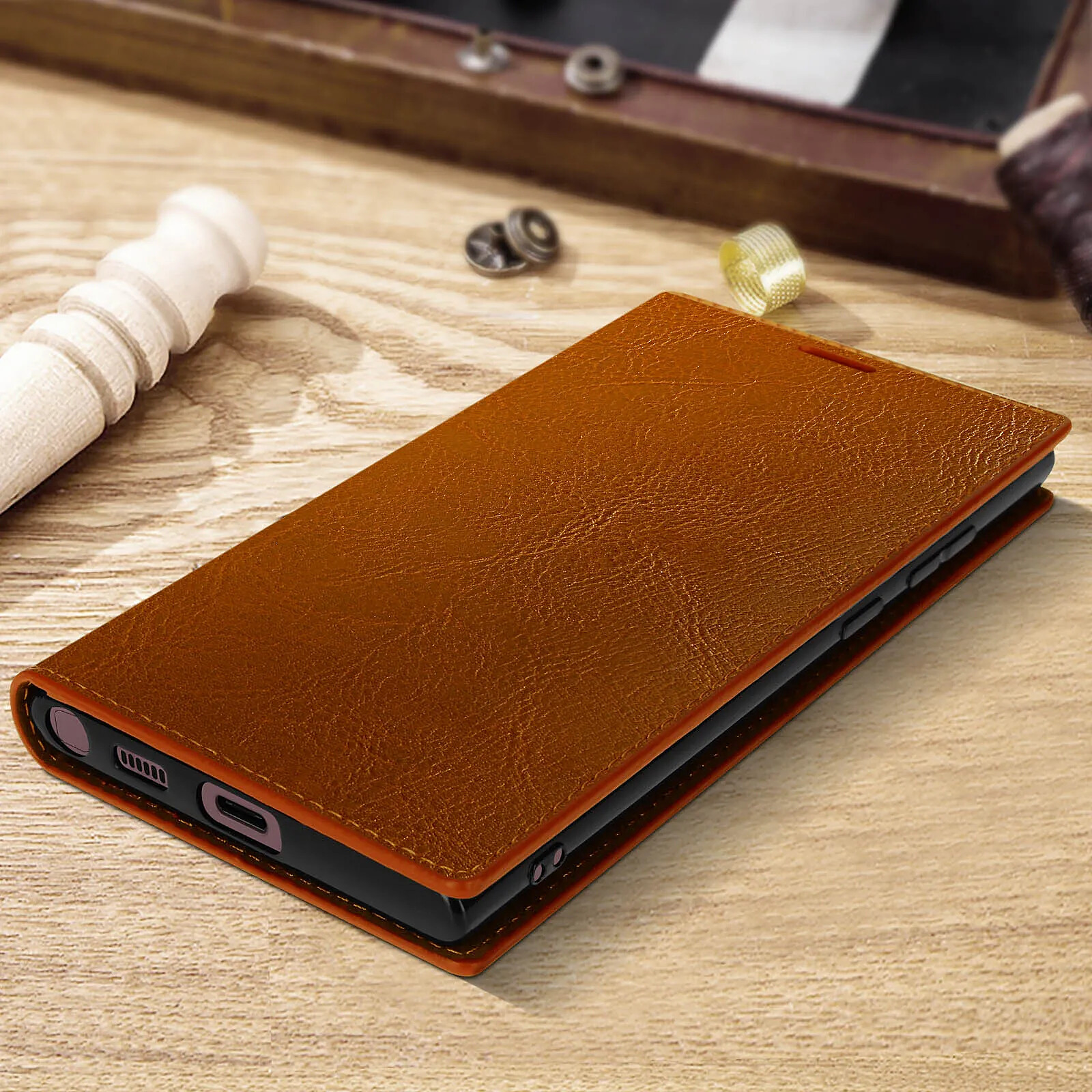 Avizar Étui Galaxy S22 Ultra Folio Cuir Véritable Porte cartes Support Vidéo - camel
