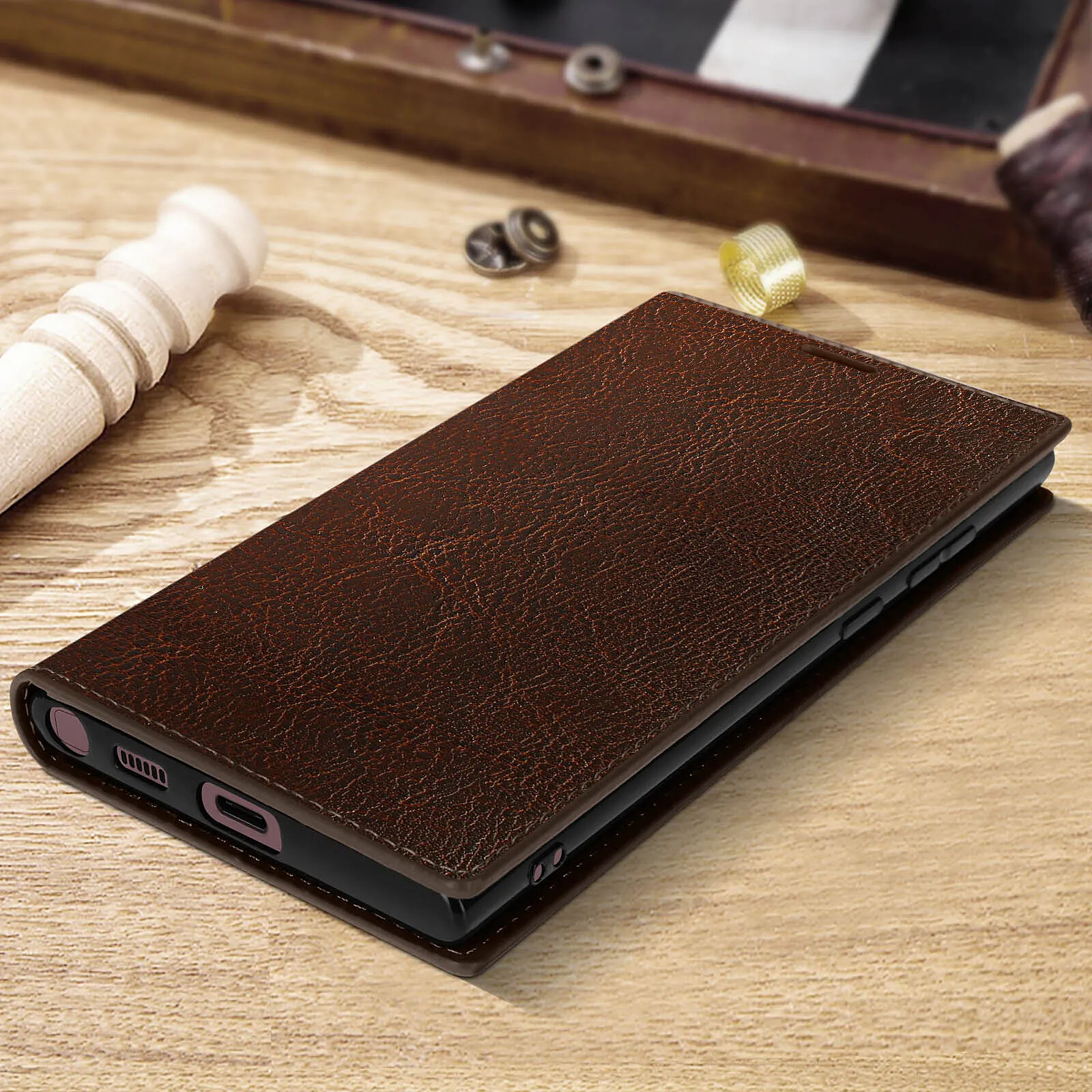 • Avizar Étui Galaxy S22 Ultra Folio Cuir Véritable Porte cartes Support Vidéo - marron - Étui en cuir de vachette conçue pour protéger votre Samsung Galaxy S22 Ultra