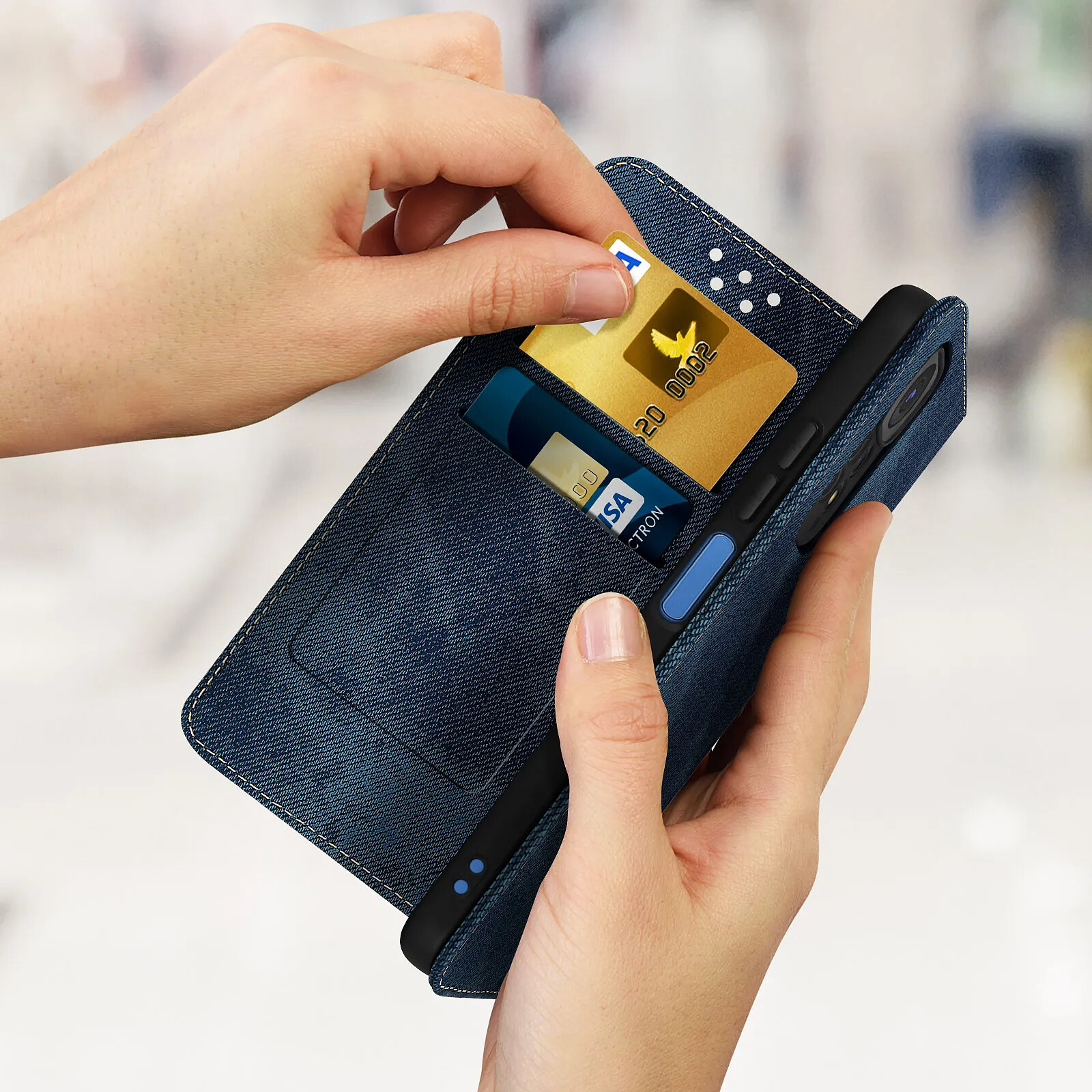 Avizar Étui Redmi Note 11/Note 11s Tissu Denim Porte-carte Support Vidéo Bleu |