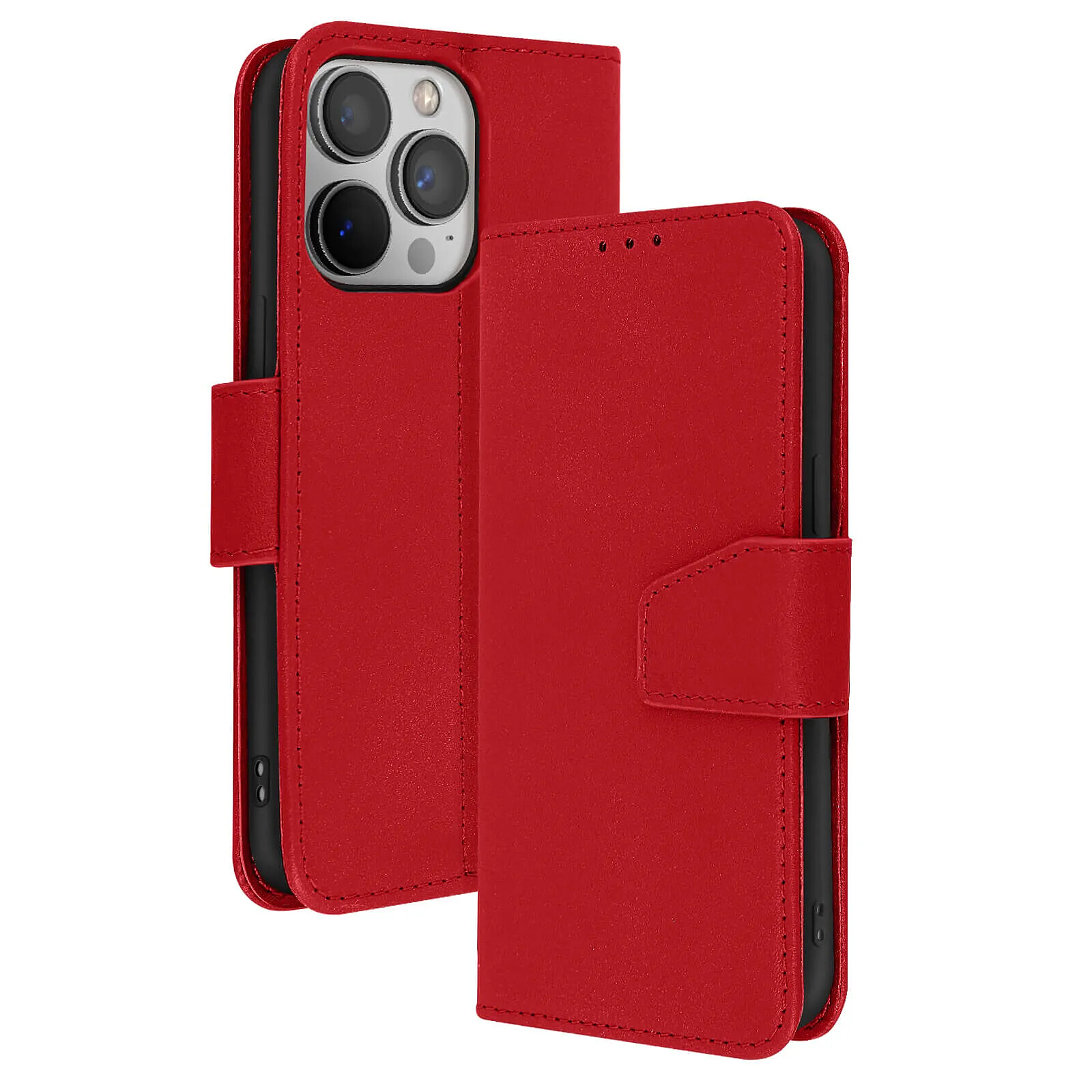 Avizar Étui Portefeuille pour iPhone 13 Pro en Cuir Premium avec Fonction Stand Rouge |