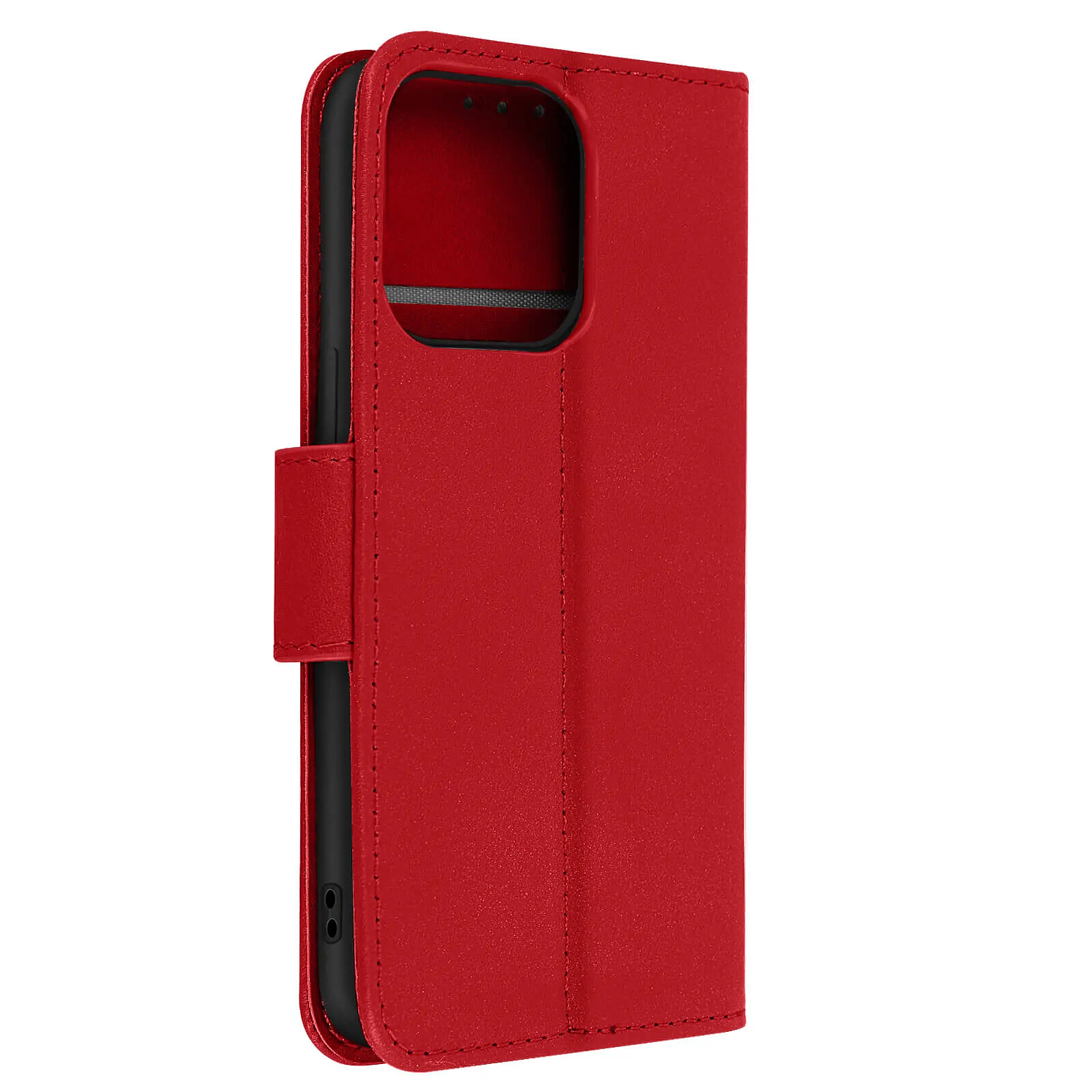 Cet étui portefeuille rouge pour iPhone 13 Pro est fabriqué en cuir véritable à surface lisse, souple et résistante. La coque interne absorbe les chocs et protège les bords du smartphone. Les surpiqûres ton sur ton renforcent la solidité du rabat et soulignent la finition soignée du cuir. L'intérieur intègre deux fentes pour cartes bancaires ou de transport, ainsi qu'un compartiment latéral pour billets.
