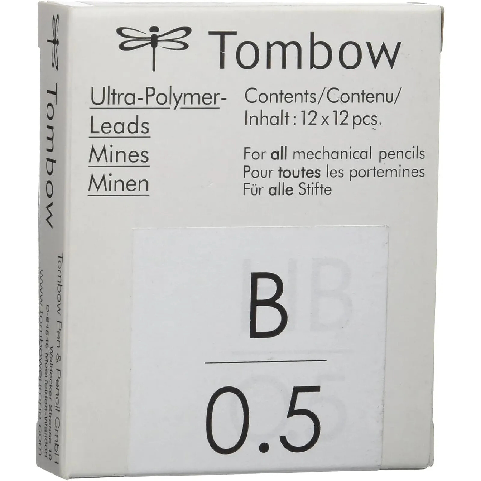 TOMBOW Etui de 12 Mines pour porte-mine pointe calibrée 0,5 mm dureté B x 12 |