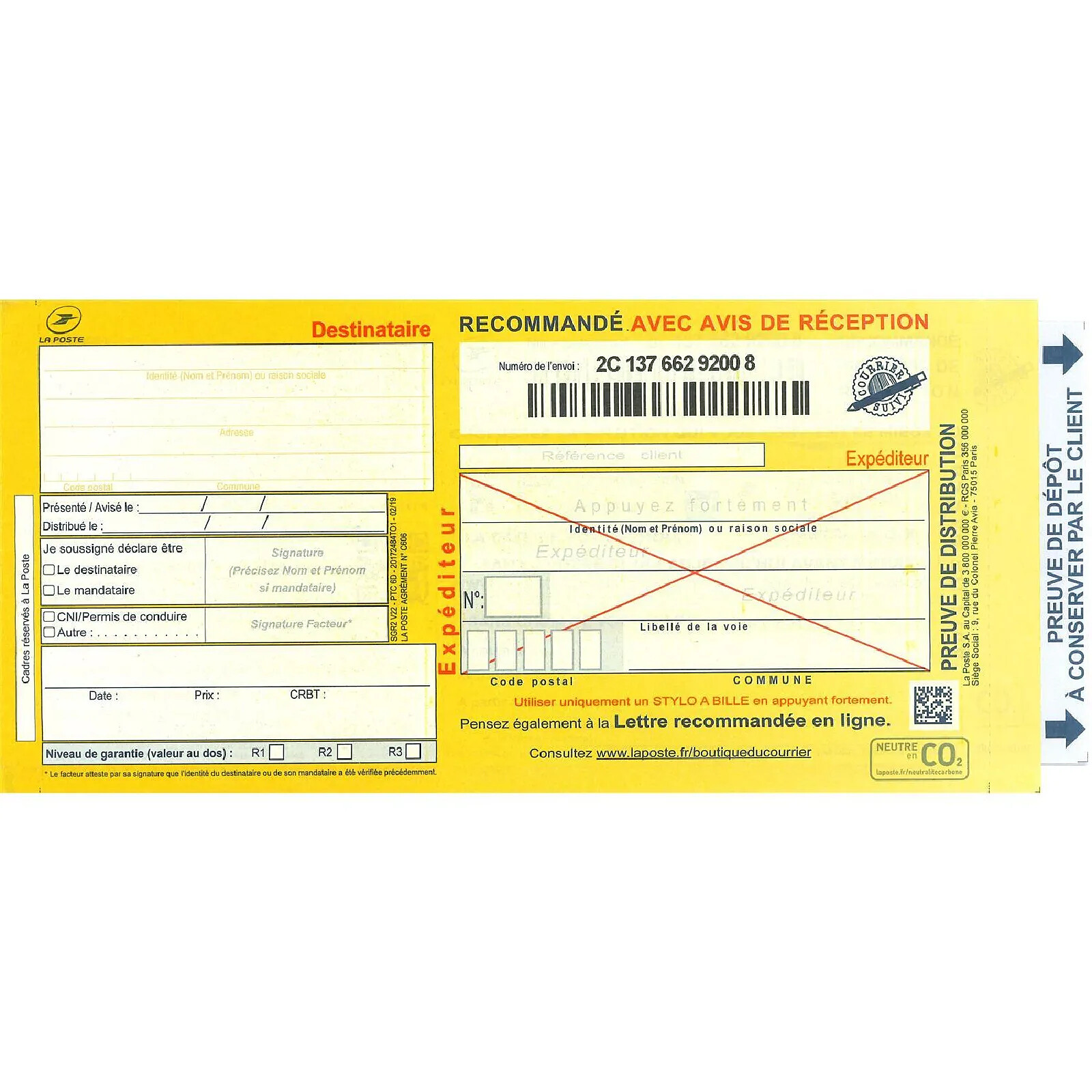 JPC pack de 100 liasses guichet pour envois recommandés avec AR SGR2 |