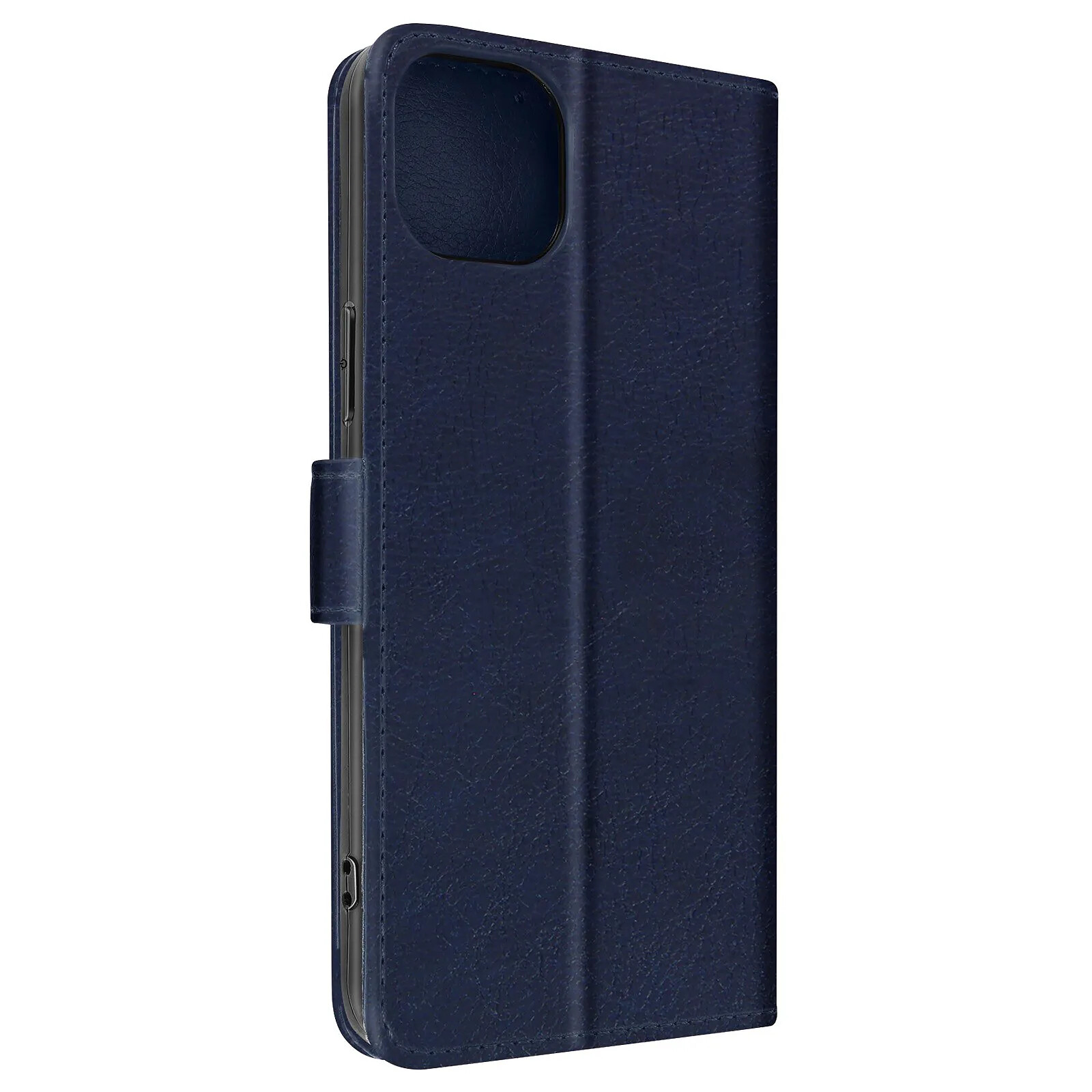 Avizar Étui Portefeuille pour iPhone 14 Plus Chesterfield Grainé Fonction Stand Bleu nuit |
