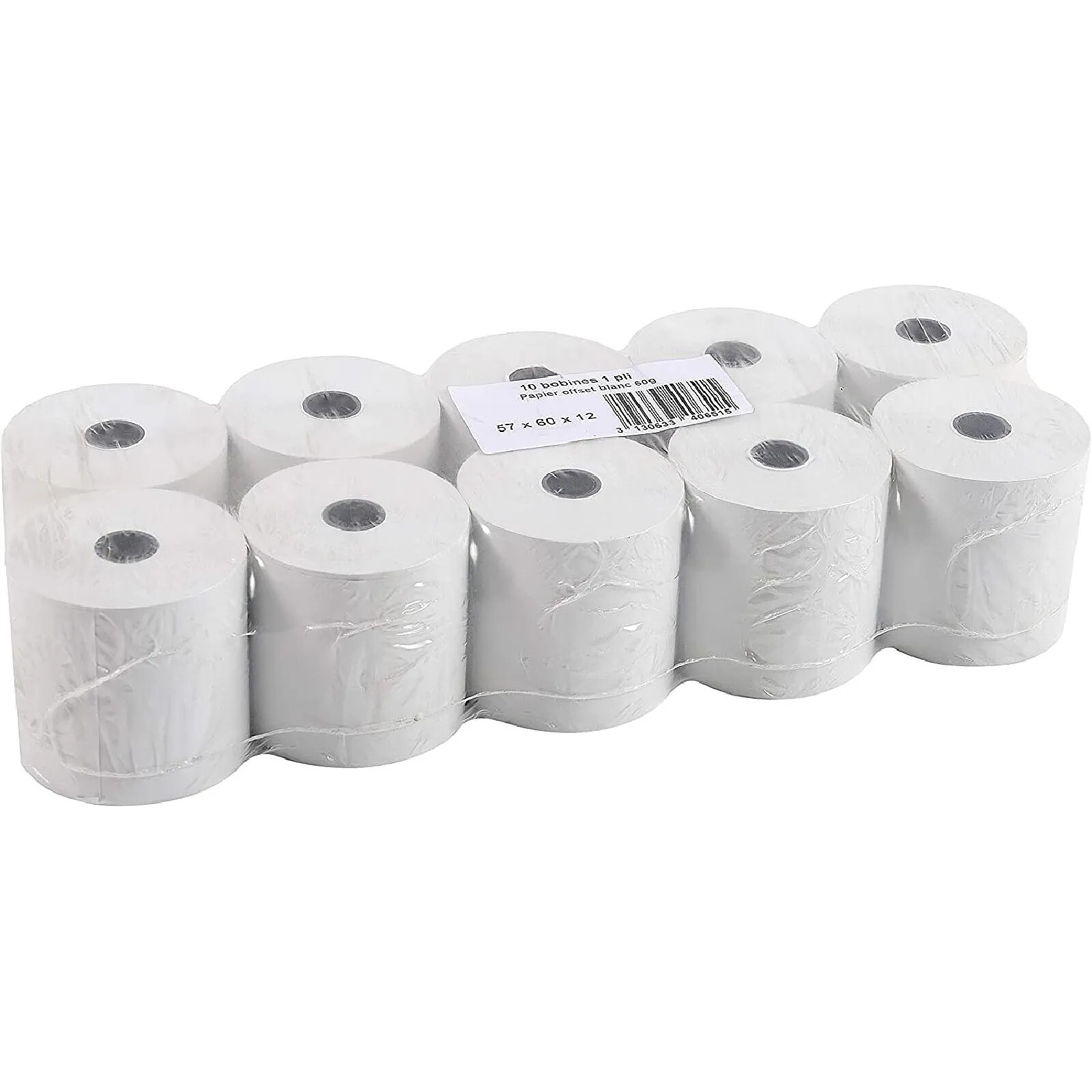 EXACOMPTA Lot de 10 Bobines Papier 1 Pli Offset 60g 57x60x12 x 33 m