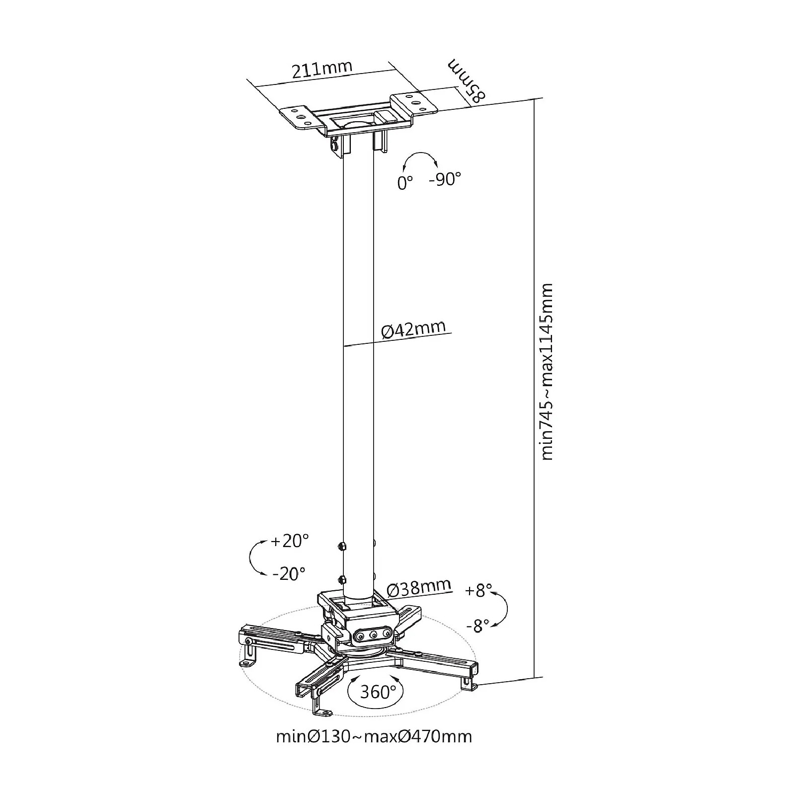 Support plafond vidéoprojecteur, Hauteur 75-115cm, Blanc