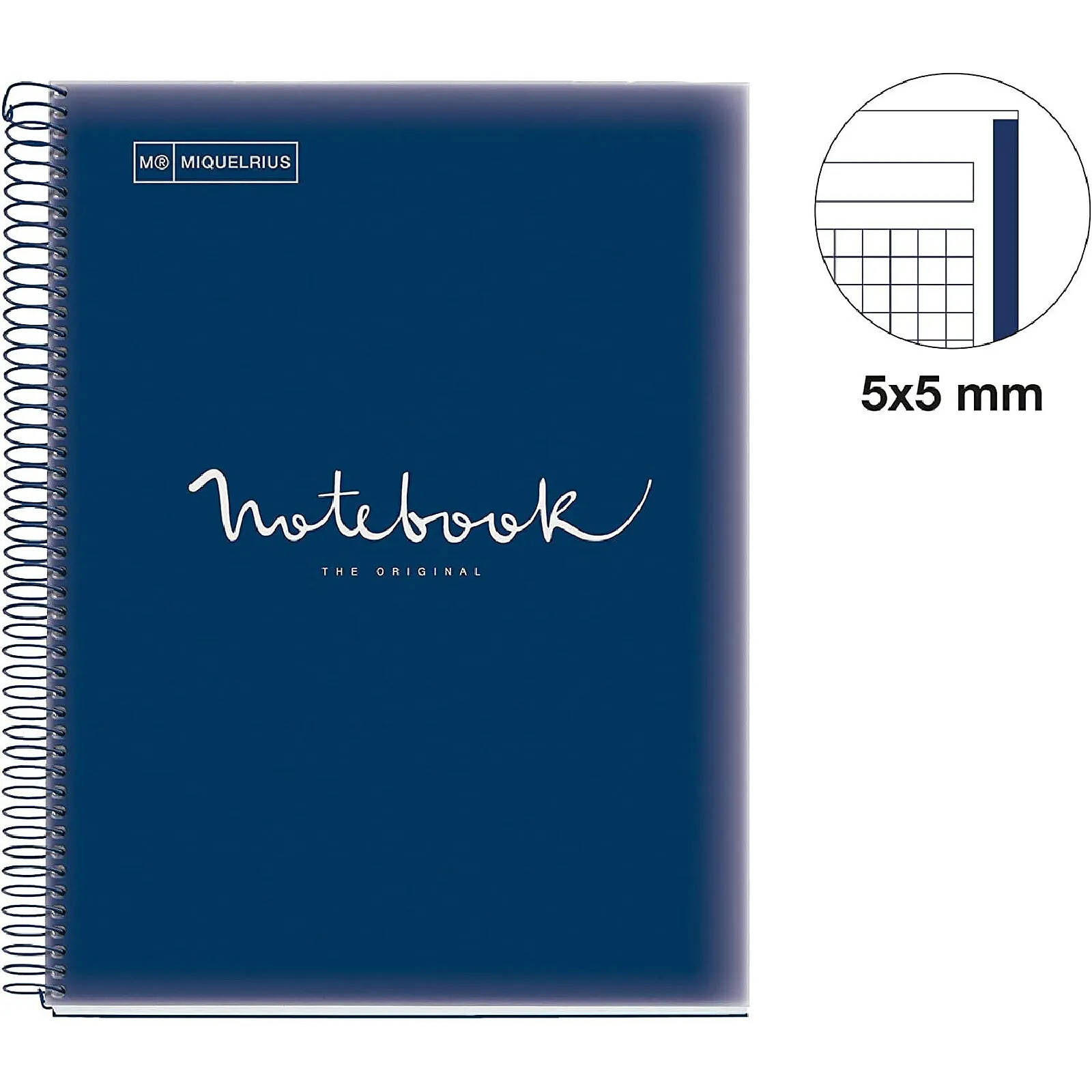MIQUELRIUS Cahier Spirale A4 (21x29,7cm) Petits carreaux 80 p 90g Couverture Polypro bleu marine |