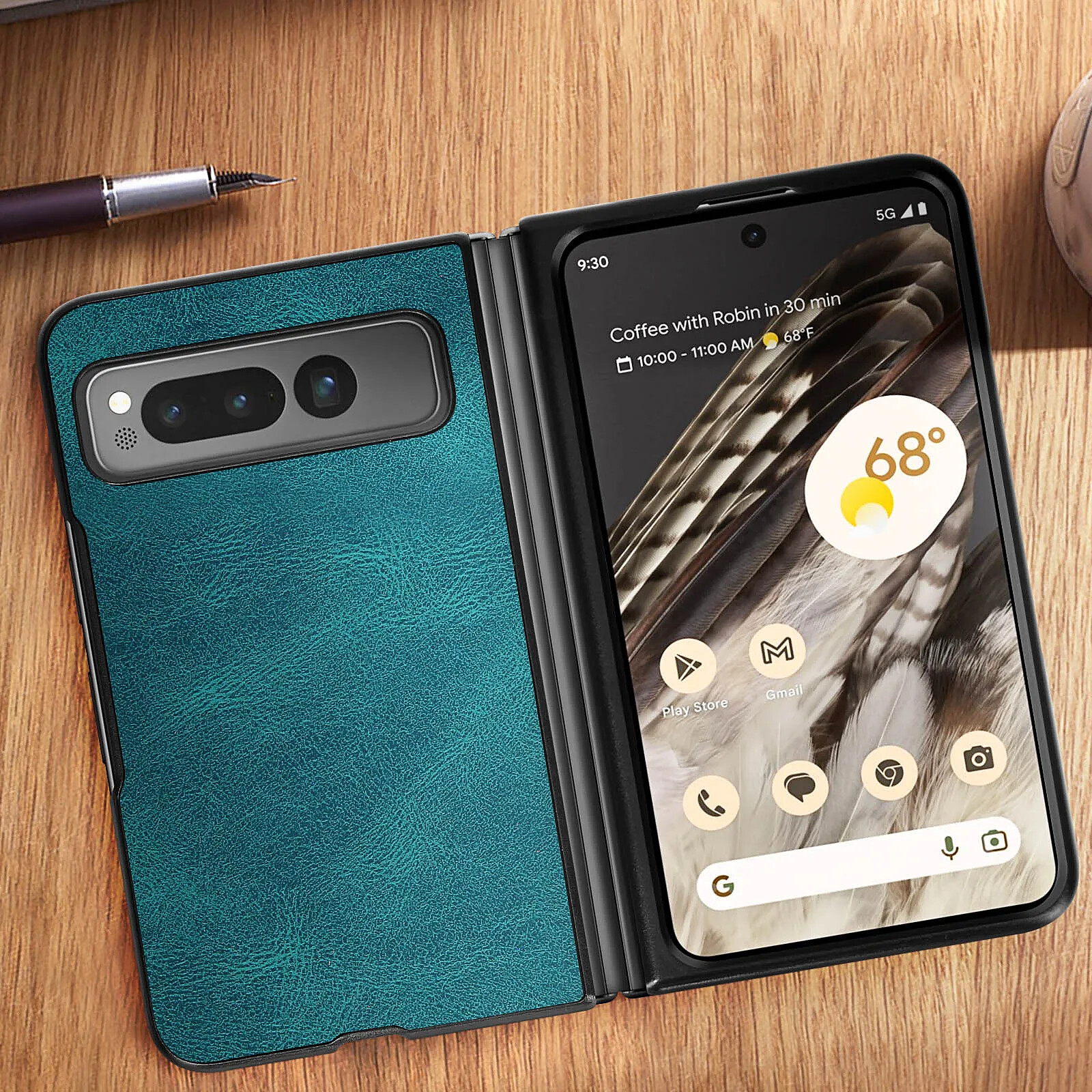 Avizar Coque pour Google Pixel Fold, Rigide et Soft Touch en Simili Cuir Turquoise