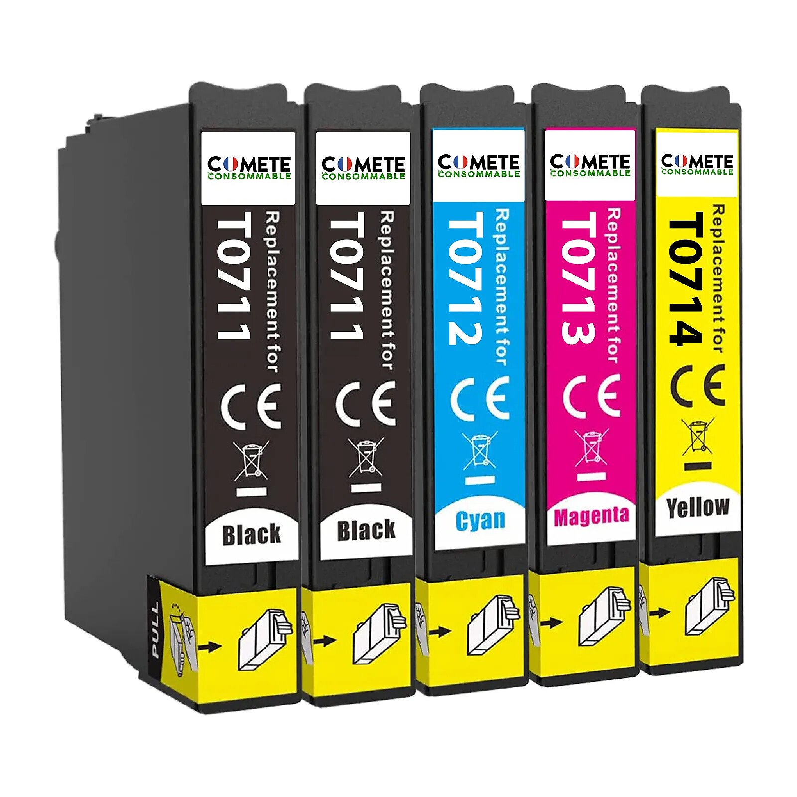COMETE - Marque Française - T0715 - 5 Cartouches d'encre Compatible avec Epson T0715 (T0711 T0712 T0713 T0714) |