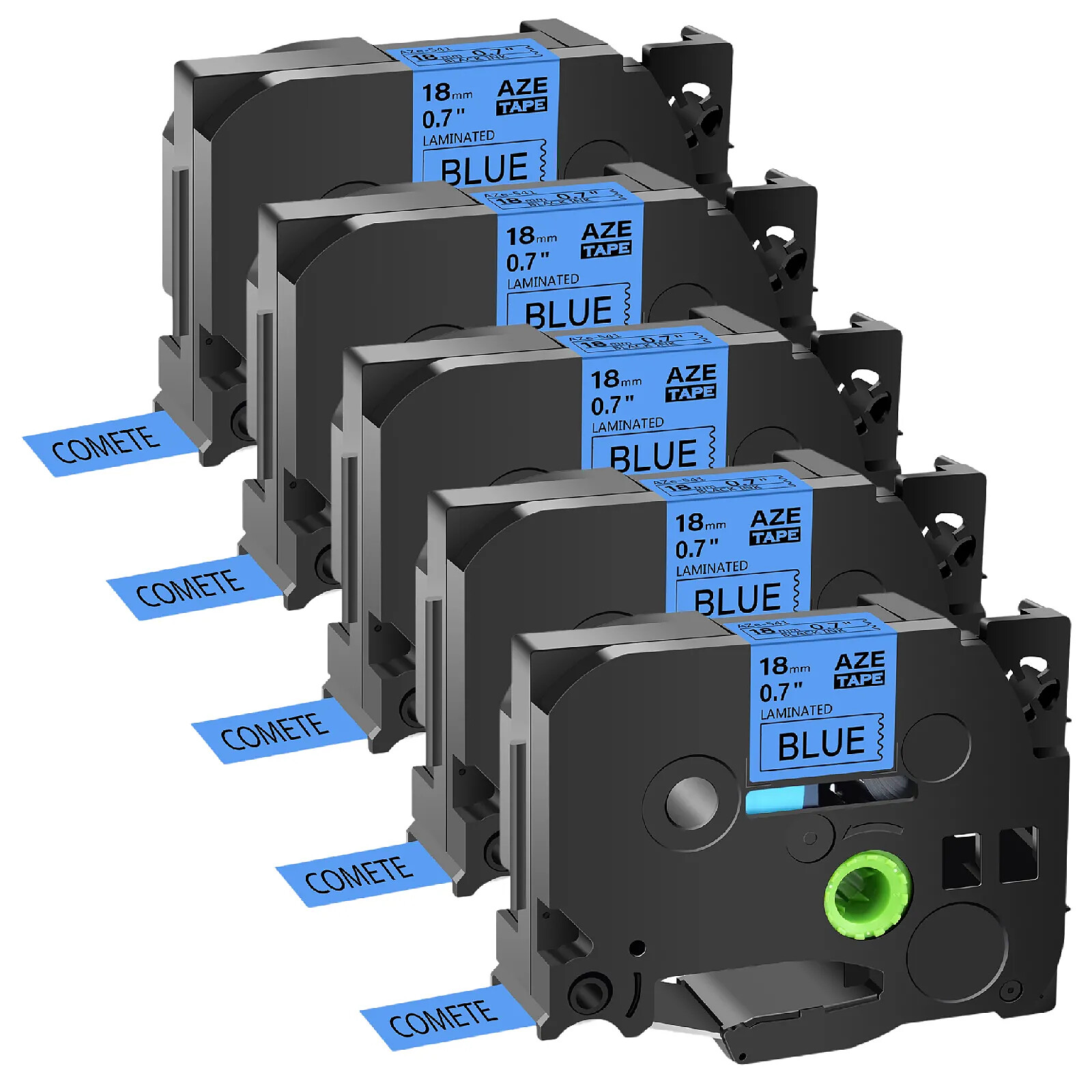 COMETE - Tze-541 - 5 Rubans compatible Brother TZe-541 Noir sur Bleu cassette recharge pour étiqueteuse Brother |