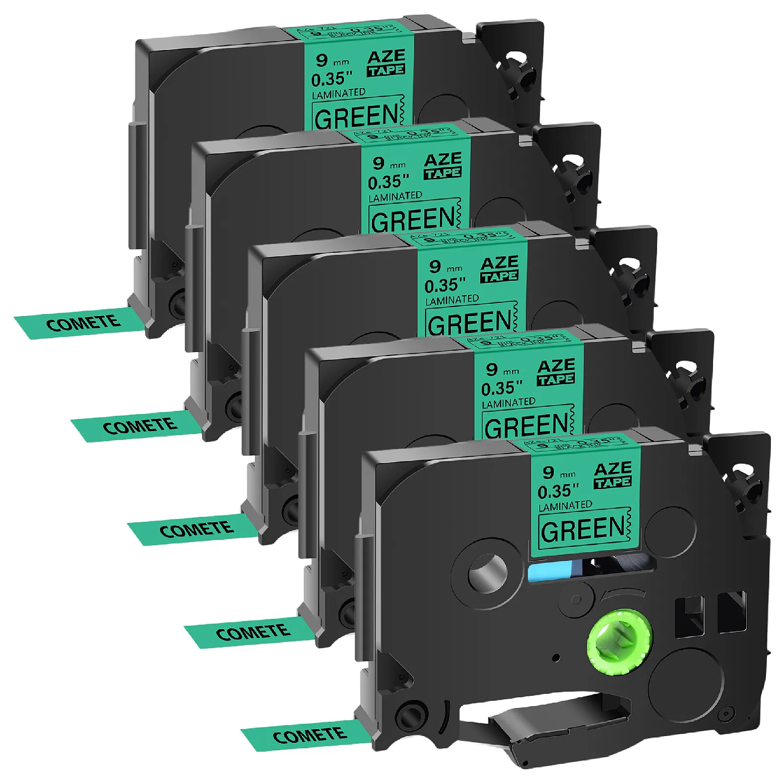 COMETE - Tze-721 - 5 Rubans TZe-721 Noir sur Vert cassette recharge pour étiqueteuse Brother
