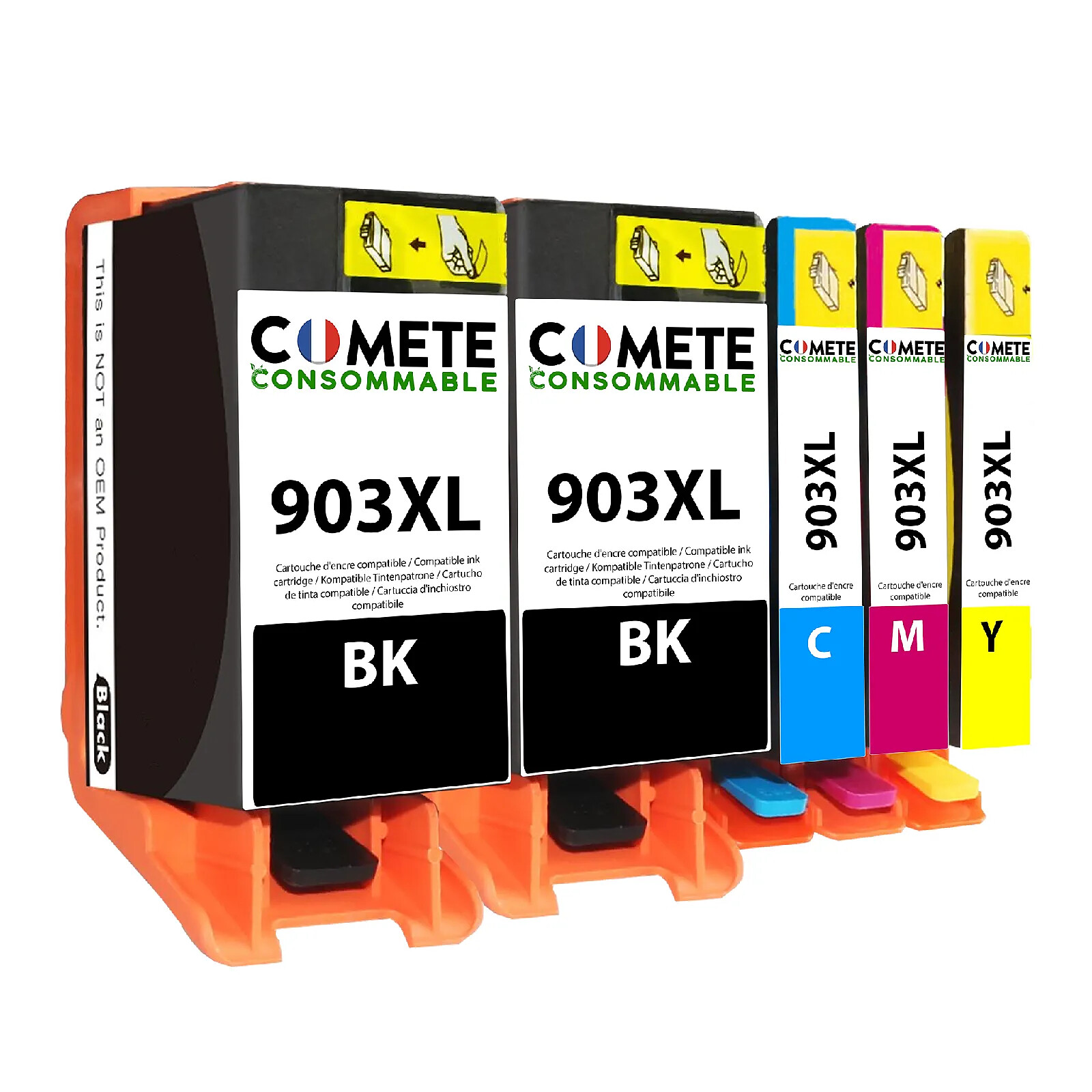 COMETE - Marque Française - HP 903XL - 5 Cartouches compatibles avec HP 903 XL - Noir et Couleur