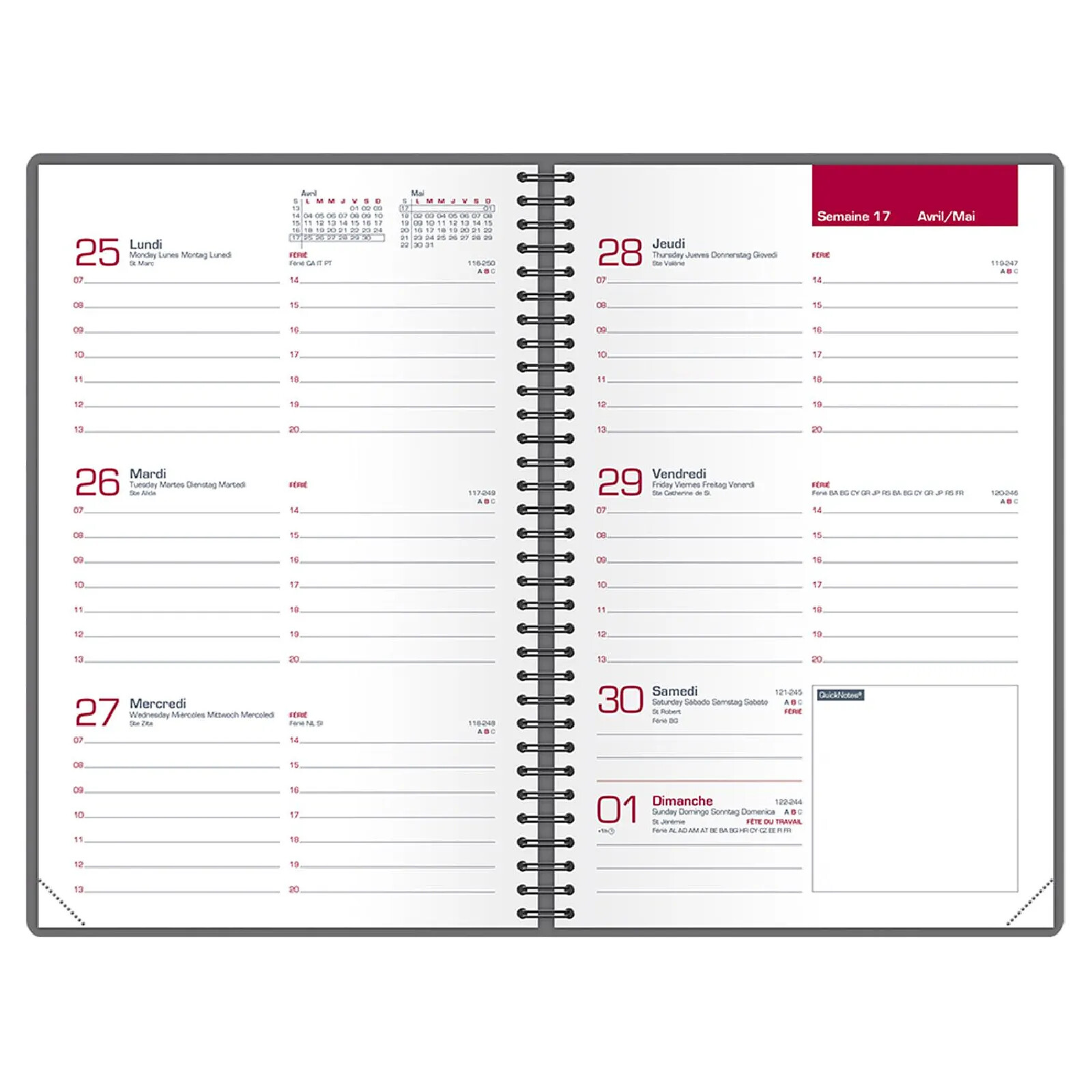 PRATIQUE : Un agenda organisé, à larges plages horaires et espaces généreux pour les notes, pour organiser vos journées en toute sérénité