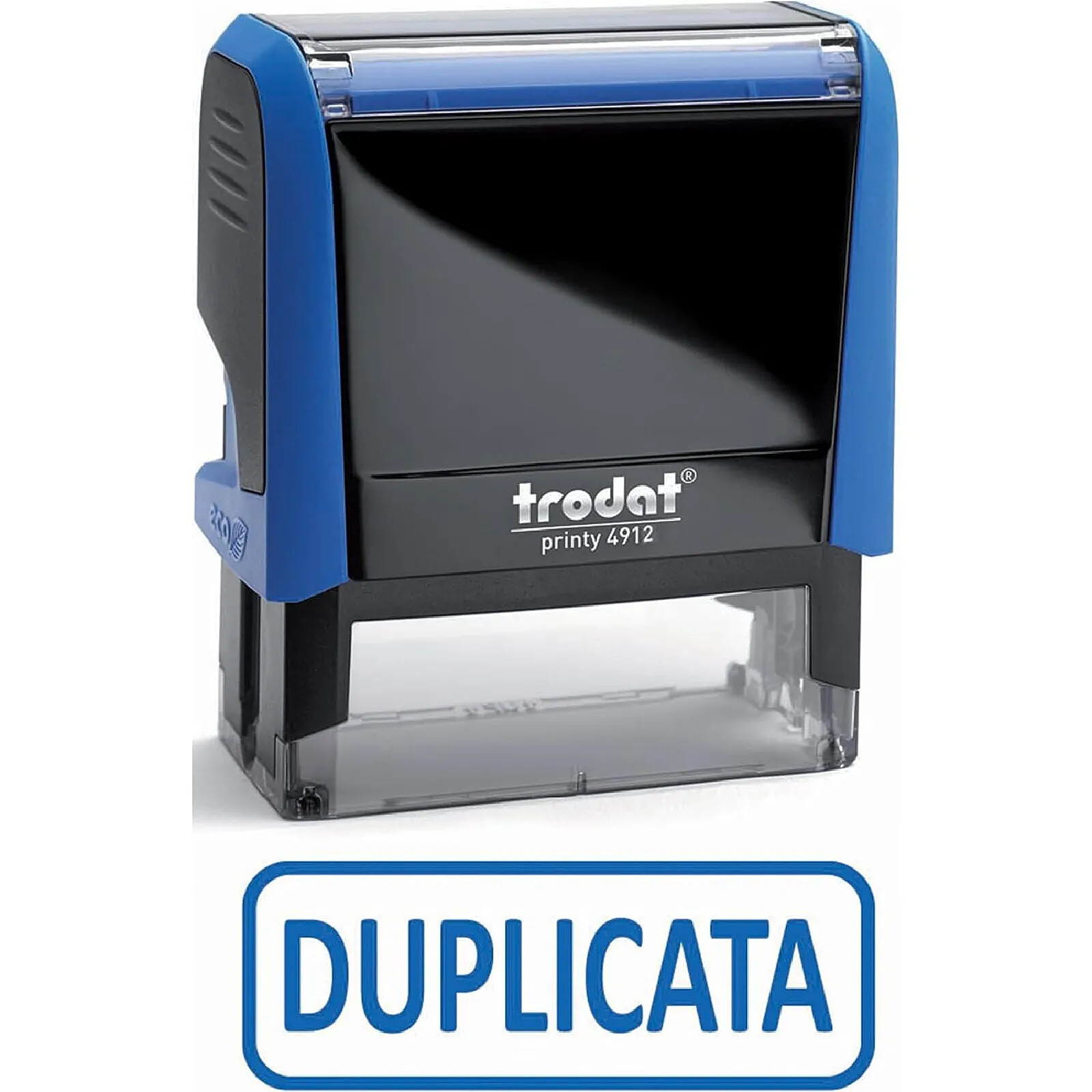 TRODAT Tampon X-print 4912 Formule Commerciale Texte + Picto 'DUPLICATA' Bleu |