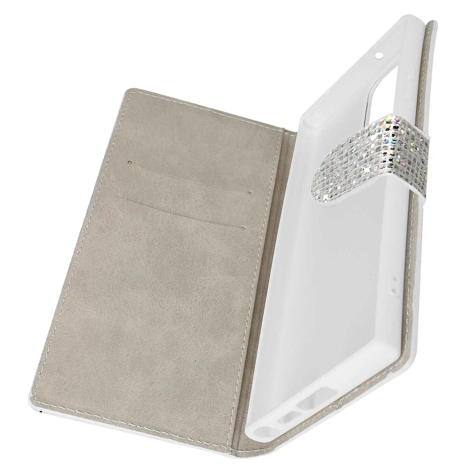 Avizar Étui pour Samsung S23 Ultra Pailleté Disco Portefeuille Support vidéo Argent |