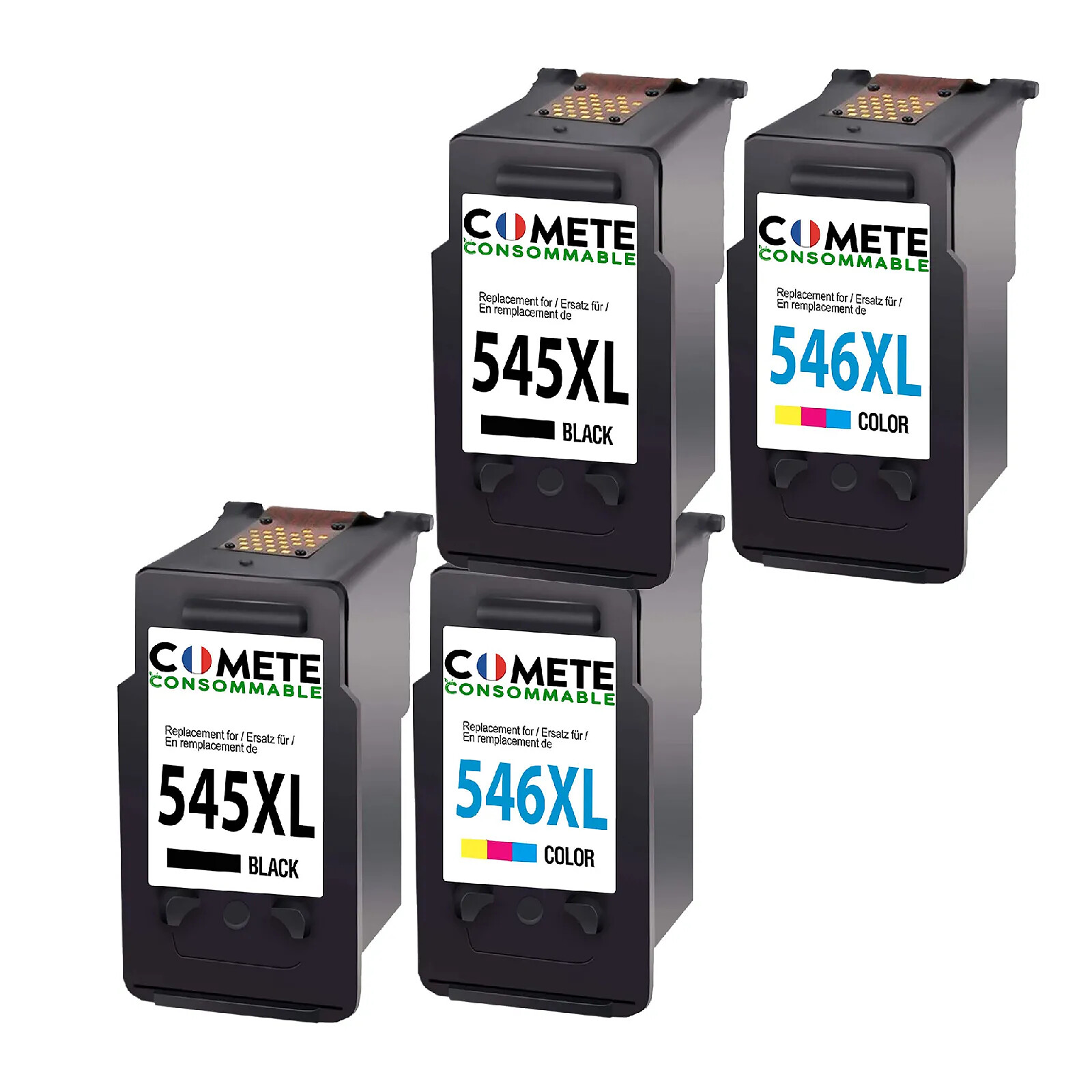 COMETE - 545XL/546XL - Pack de 4 Cartouches d'encre Compatibles avec Canon - Noir/Couleur - Marque française |
