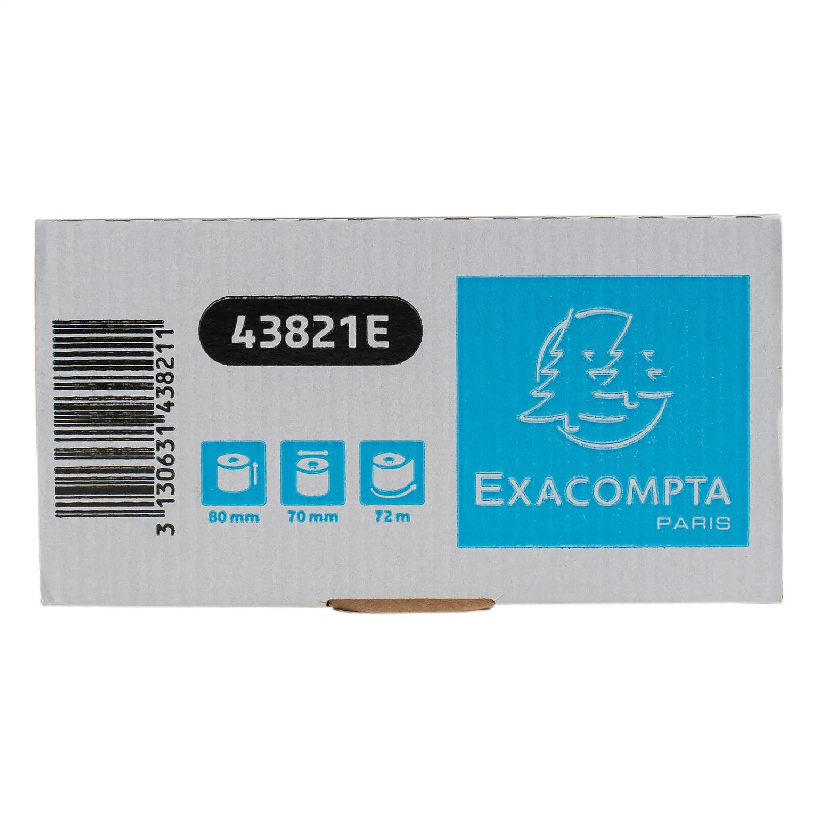 48 x Bobine pour tickets de caisse 80x70mm - 72m - 1 pli thermique 48g/m2. Format de la bobine : 80 mm de laize (largeur) et 70 mm de diamètre. Métrage (+ ou - 2m) : 72 m. Mandrin standard de 12 mm. Convient à toute marque de caisse thermique. Avec impression des logos FSC et Exacompta au verso Suremballage en boîte carton refermable pour une meilleure protection contre la lumière et l'humidité. Les bobines se conservent ainsi dans de meilleures conditions avant utilisation. Papier haute sensibilité garantissant une bonne lisibilité de l'impression. Avertissement de fin de rouleau. Fabrication française. Boîte de 6 bobines - carton de 8 boîtes, PHOTOS NON CONTRACTUELLES