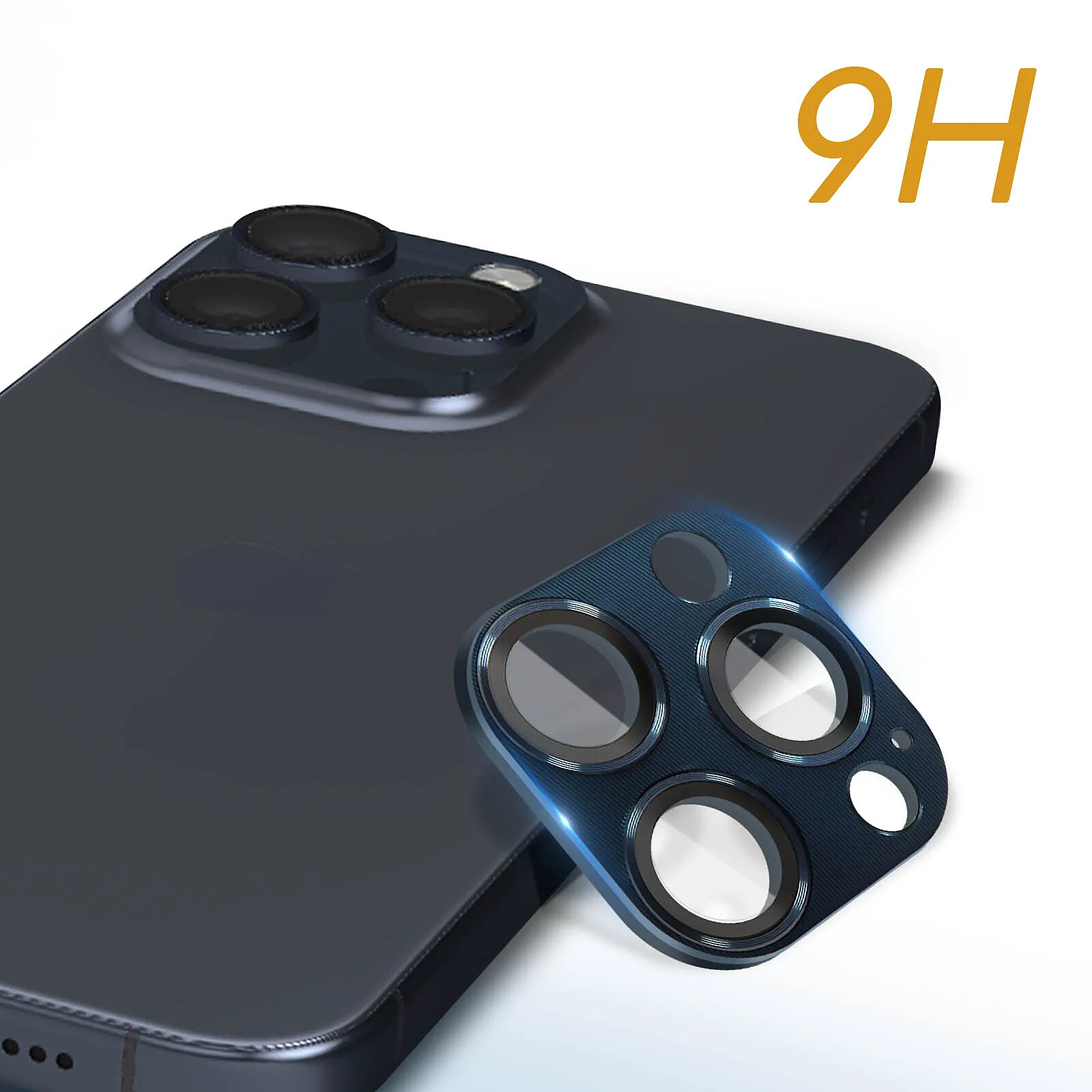 Protection caméra pour iPhone 15 Pro et 15 Pro Max, de la marque Enkay. En verre trempé 9H résistant aux rayures et aux chocs. Revêtement anti-traces. Traitement anti-explosion. Contour en alliage d'aluminium. Ultra-fin et transparent. Installation facile
