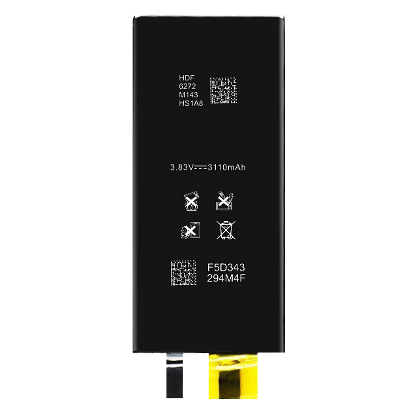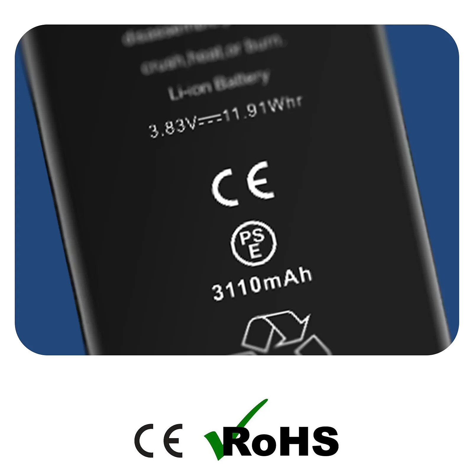 Batterie sans BMS pour iPhone 11. Permet de recevoir le BMS d'origine. Assure une installation sans message d'erreur. Capacité 3110mAh pour donner une seconde vie a votre iPhone. Conforme aux normes CE et RoHS. Conforme CE & RoHS.