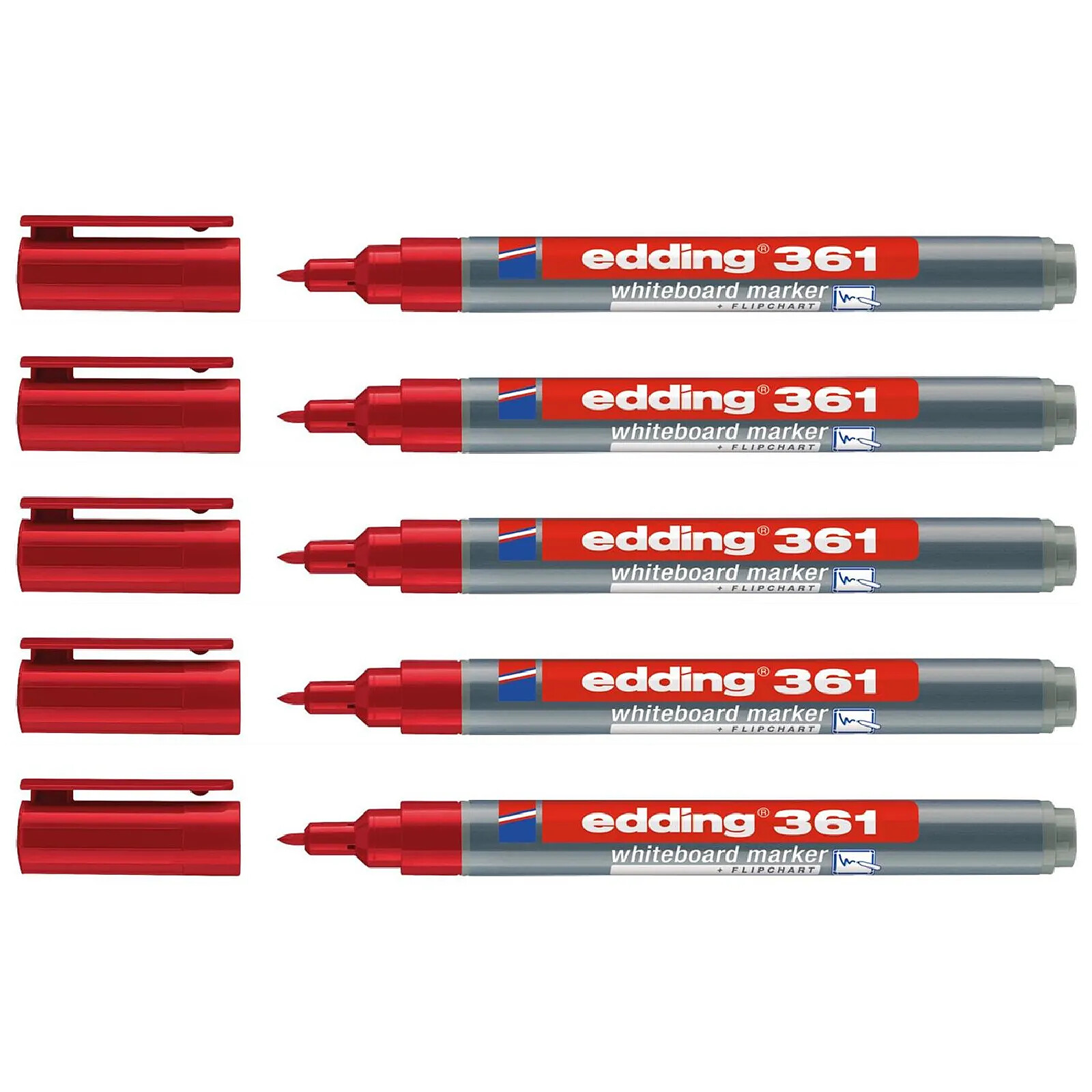 EDDING Marqueur pour Tableaux blancs 361 Rouge Pointe Fine 1 mm x 5