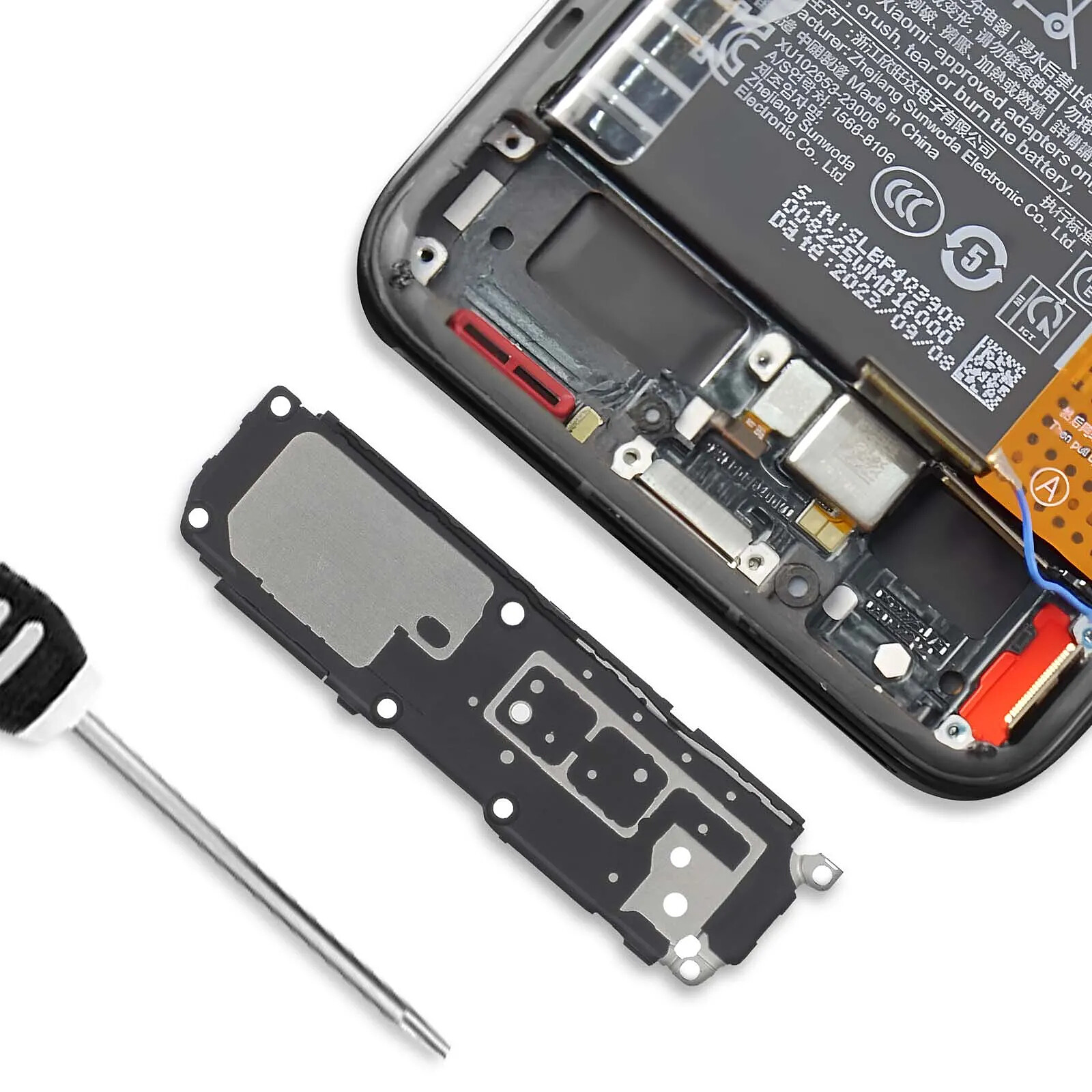 Haut-parleur externe de rechange pour Xiaomi 14. Permet de retrouver un son clair et précis pour vos musiques, vidéos et appels en mode mains libres. Nappe de connexion intégrée. 100% compatible avec le smartphone.