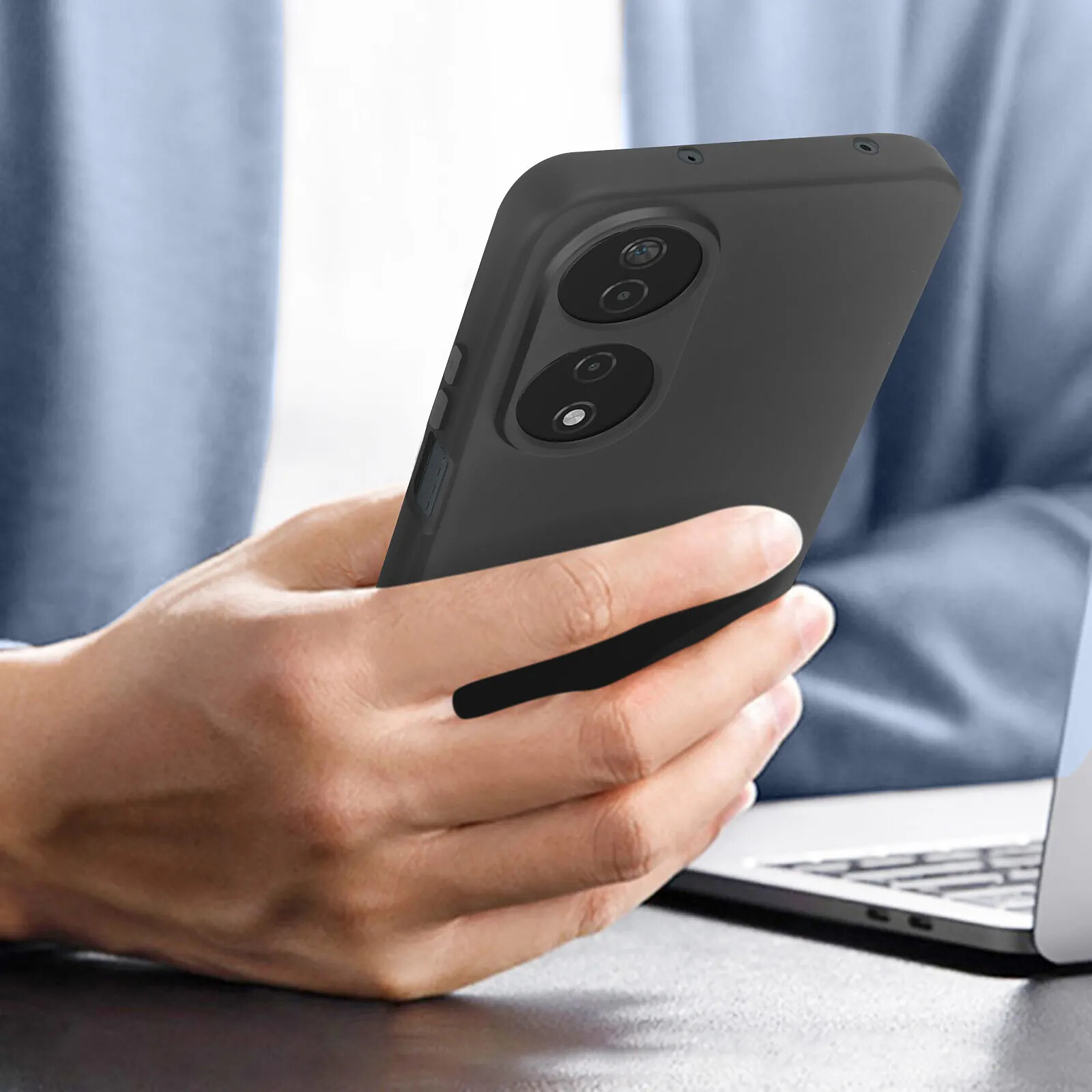Avizar Coque pour Honor 90 Smart Silicone Finition Soft-touch avec Dragonne Noir |