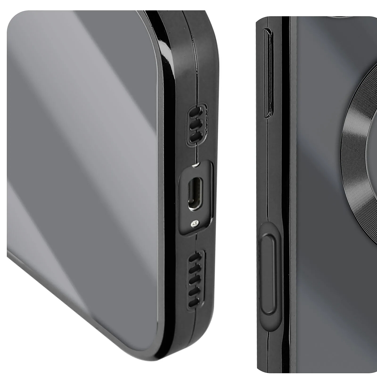 Coque Transparente au contour Noir série Glam, conçue pour appareil Conçue pour absorber les chocs et protéger le téléphone contre les chutes à faible hauteur et les impacts Bords surélevés qui protègent l'écran et la caméra en empêchant le contact direct avec les surfaces planes Compatible avec la charge sans fil