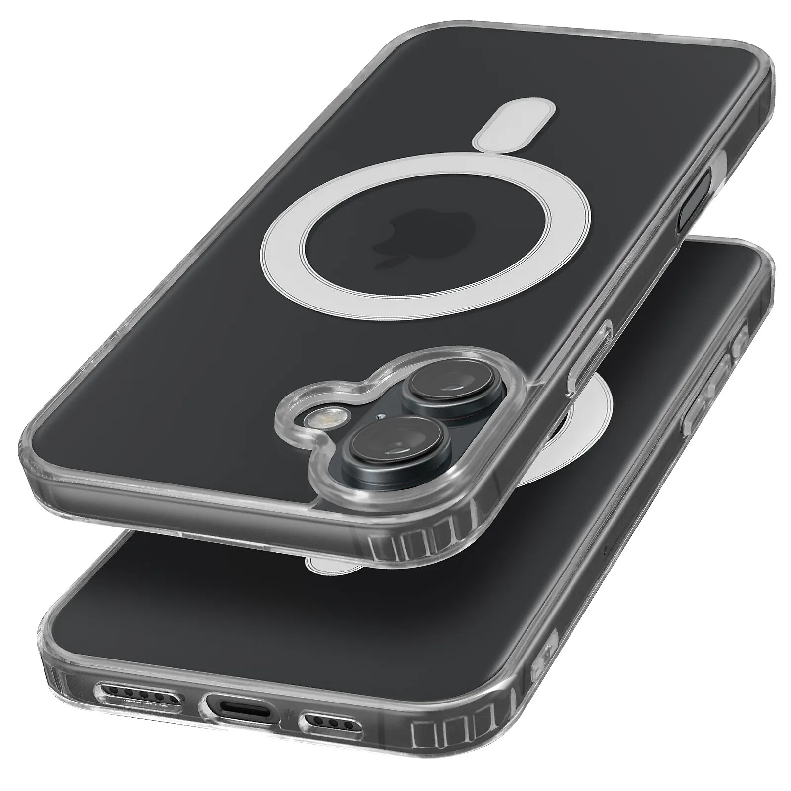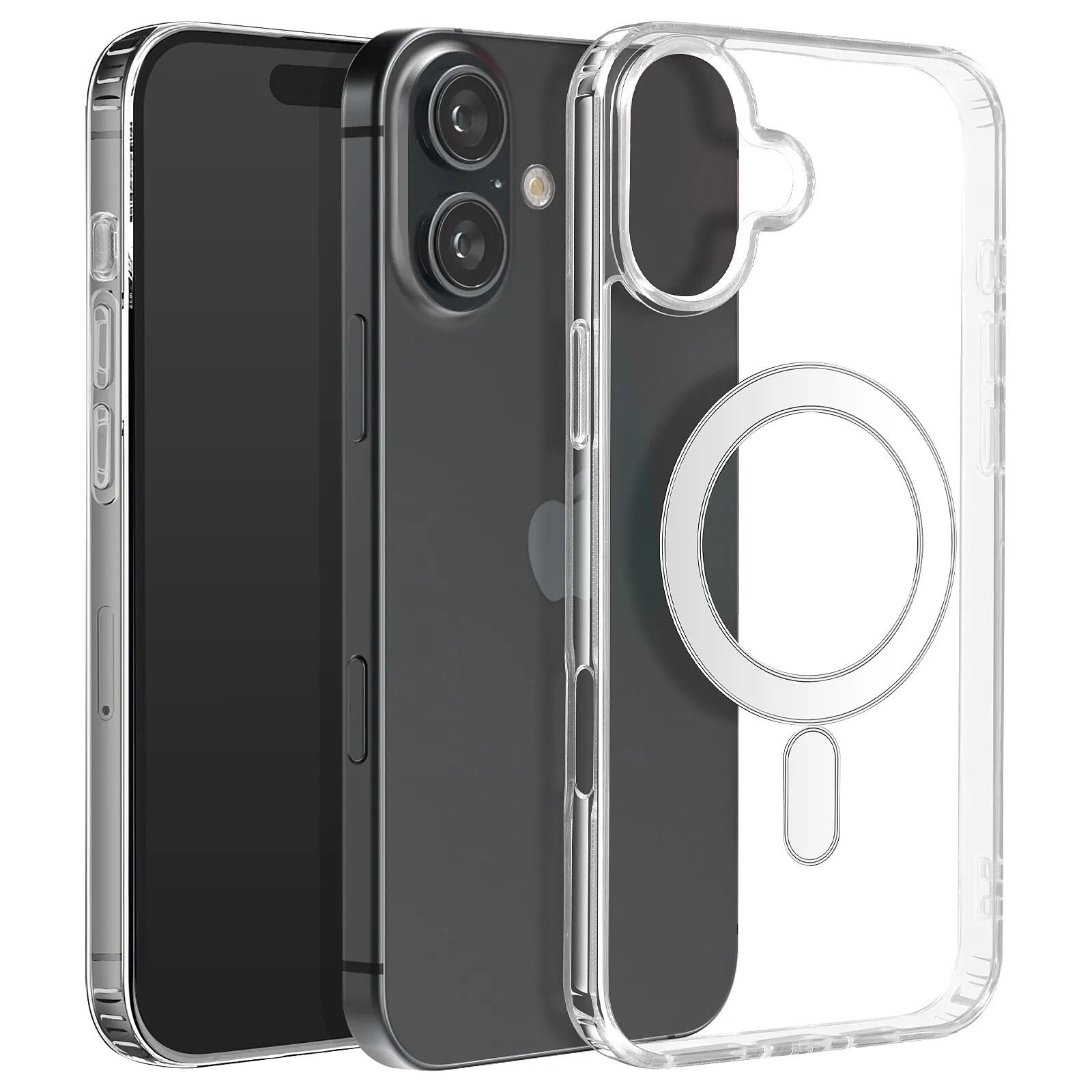 Coque pour iPhone 16 Plus avec compatibilité MagSafe. Fabriquée en polycarbonate durable et silicone flexible, elle offre une protection contre les chocs et rayures tout en permettant une charge sans fil. Anneau magnétique compatible avec les supports magnétiques. Design mince et antidérapant, pour un usage quotidien facile et sécurisé. Transparence parfaite laissant visible le design du téléphone. Fonctions accessibles.