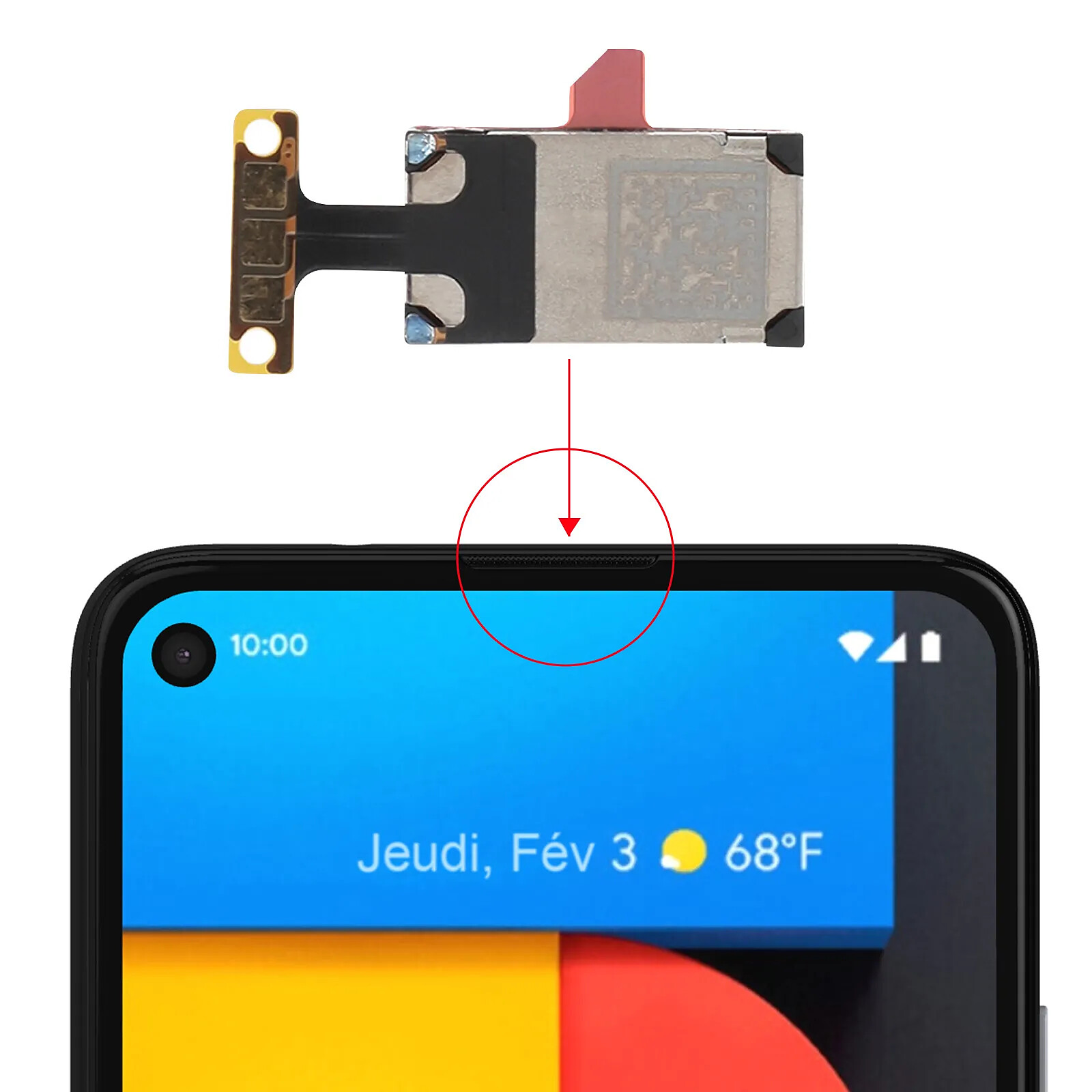 Haut-parleur interne de remplacement pour Google Pixel 4A 5G. Permet de régler les problèmes de son lors des appels (son inexistant ou étouffé, grésillements...). Parfaitement compatible à votre smartphone. Certifié CE RoHS.