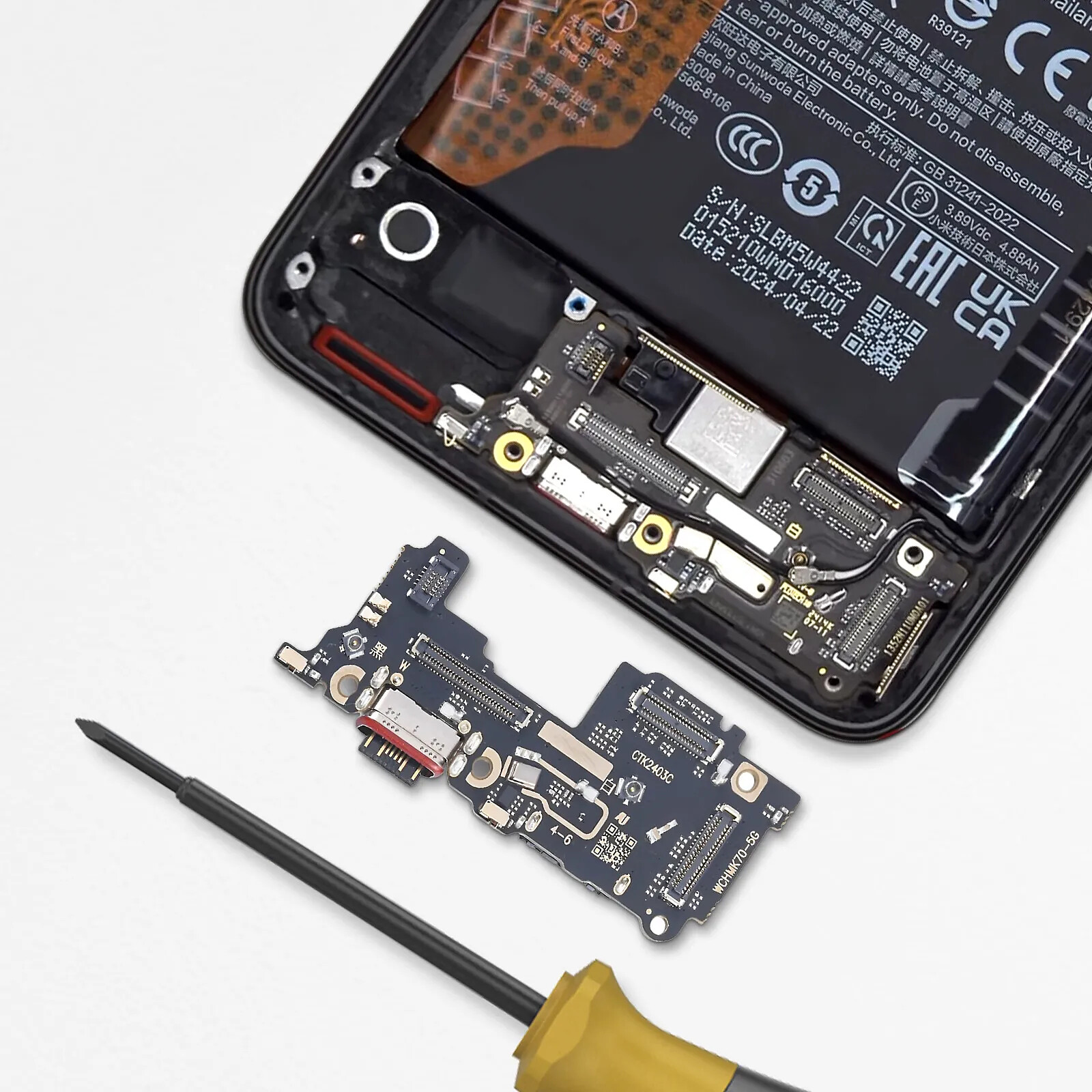 Connecteur de charge pour Xiaomi Poco F6 Pro. Port USB-C. Lecteur carte SIM intégré pour connecter au réseau à nouveau : passer des appels, envoyer des messages, etc. Immédiatement prêt à être installé. Parfaitement compatible avec votre smartphone. Conforme aux normes CE et RoHS.
