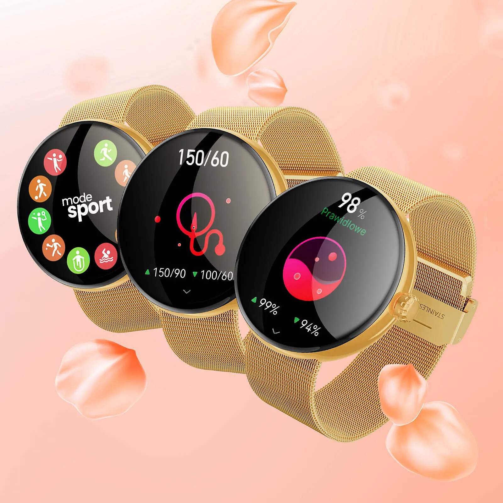 Forever Montre Connectée Femme Élégante Suivi Santé Appel Bluetooth Dorée