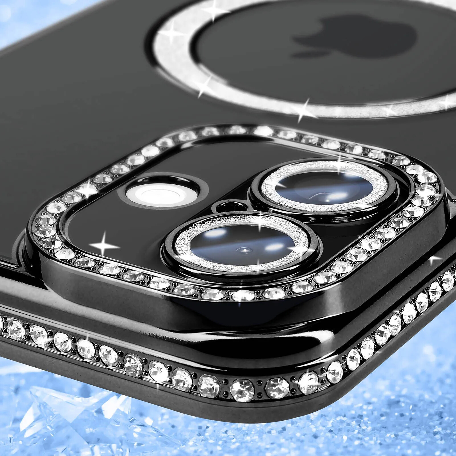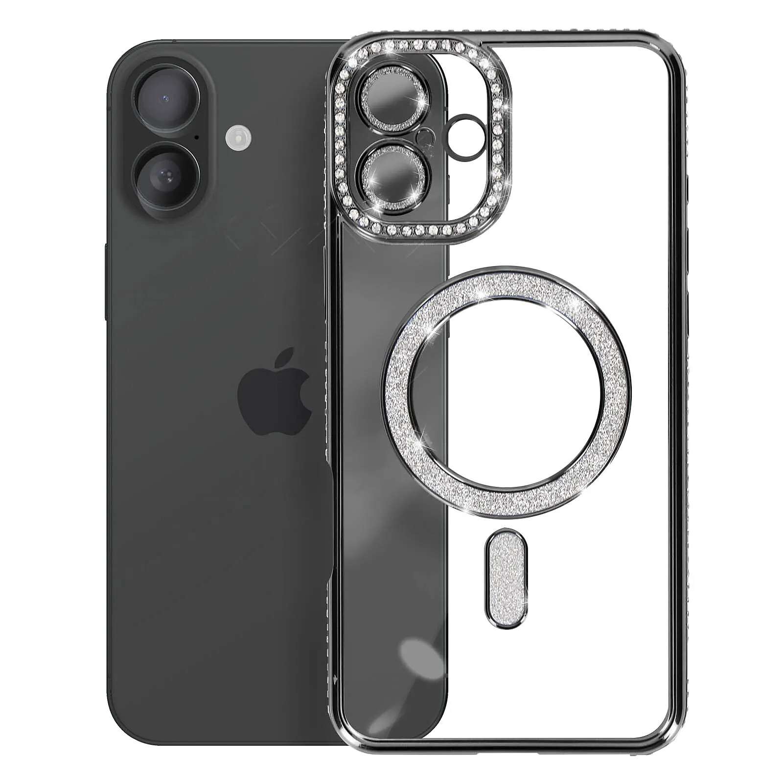 Avizar Coque Diamant pour iiPhone 16 Plus Protection MagSafe Contour Strass Noir |