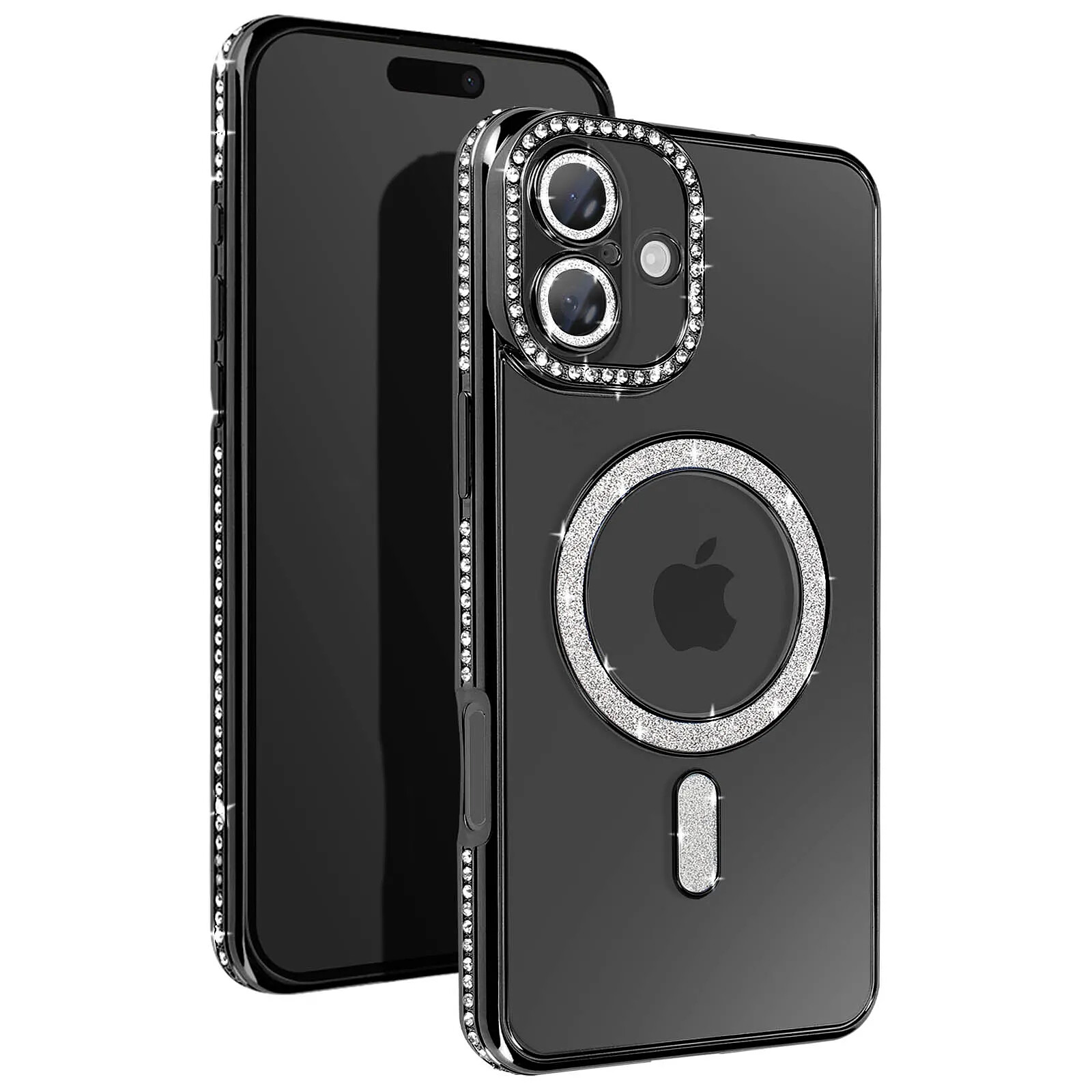 Avizar Coque Diamant pour iiPhone 16 Plus Protection MagSafe Contour Strass Noir