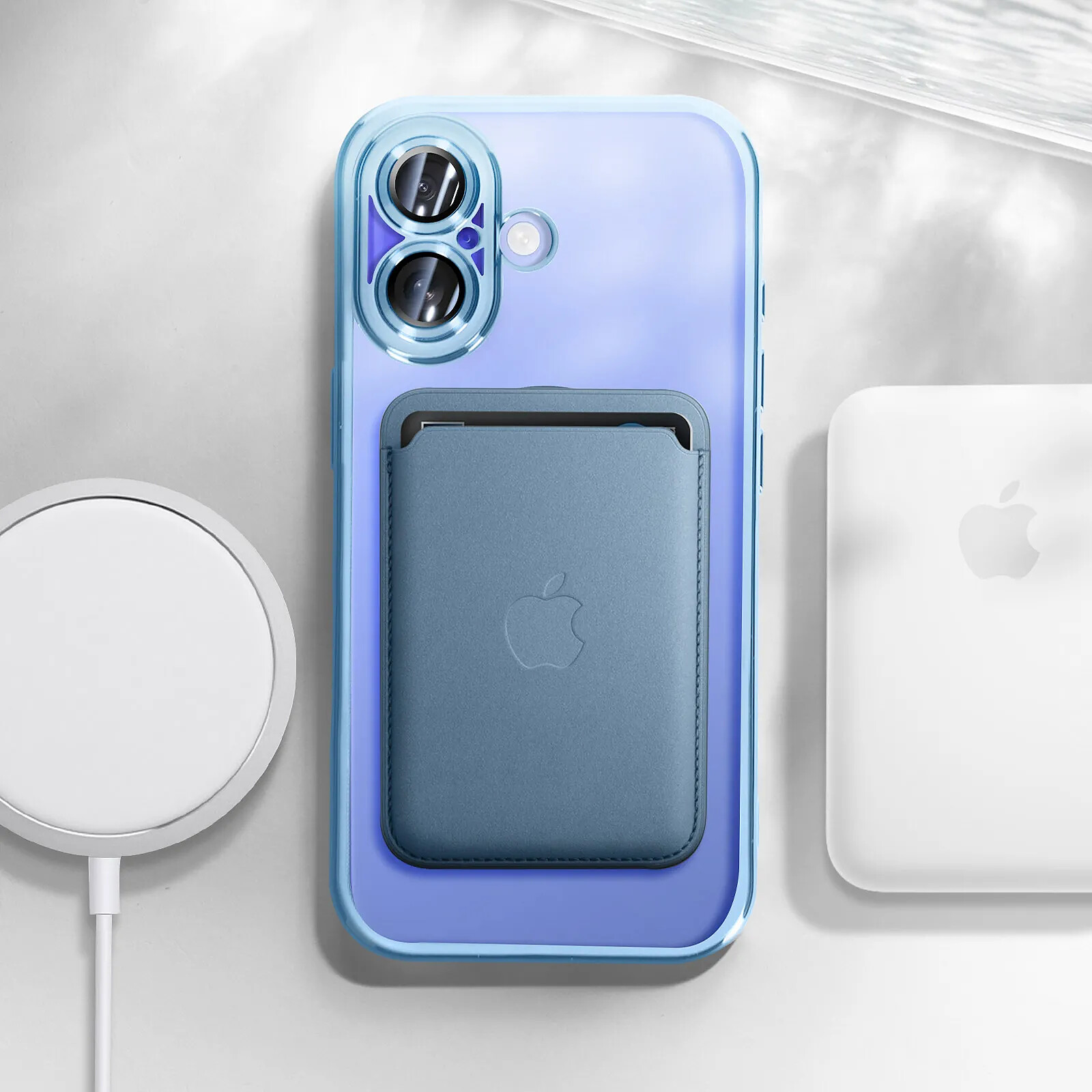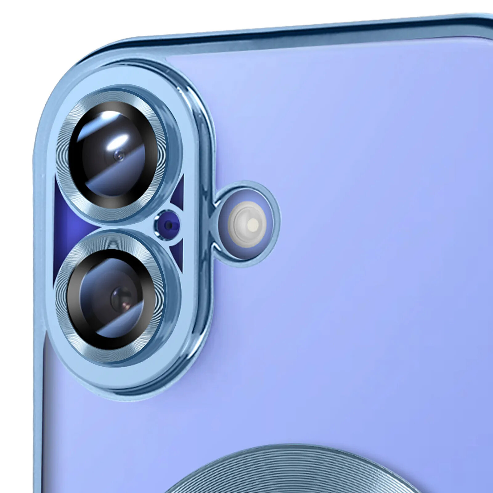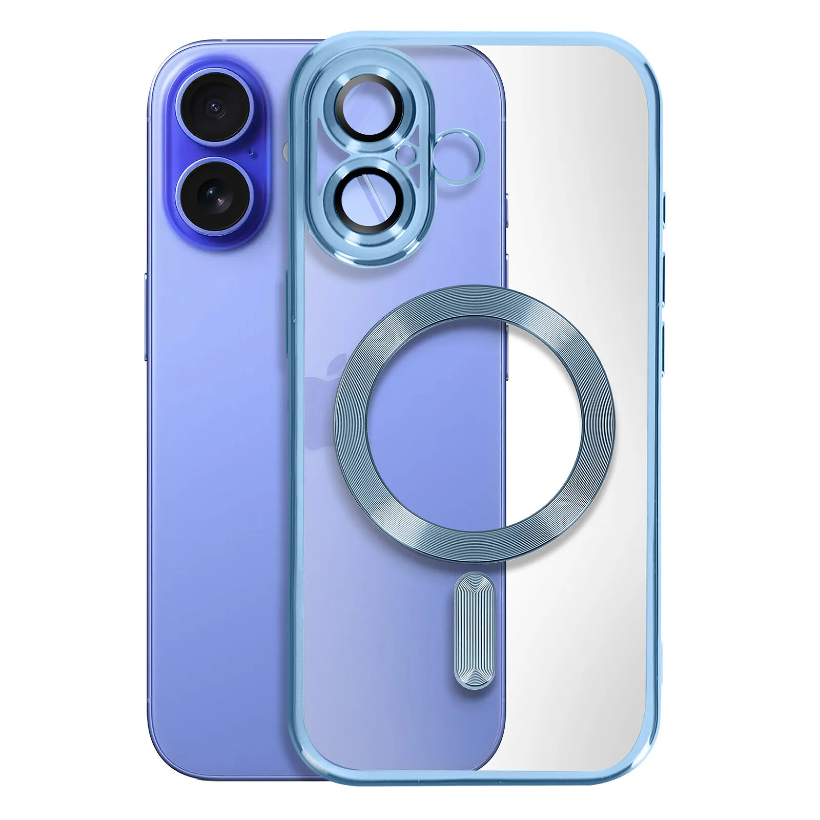 Avizar Coque MagSafe pour iPhone 16 Silicone Contour Chromé Bleu clair