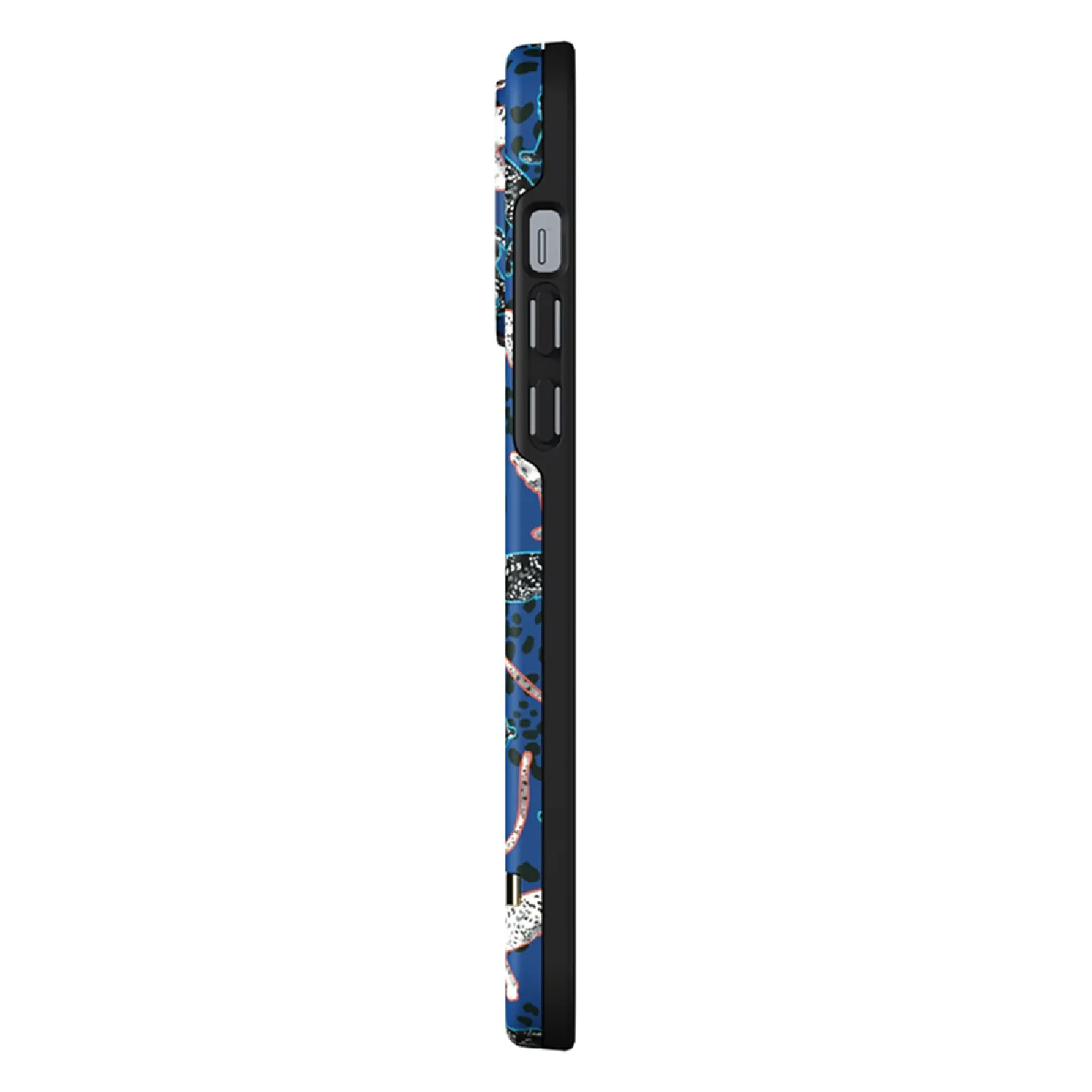 Conçue en TPU de grade médical, cette coque signée Richmond&Finch pour iPhone 13 Pro Max respecte des normes strictes de solidité et de non-toxicité. Elle dispose ainsi d'un revêtement traité antibactérien et anti-rayures, et peut résister à des chutes de près de 2m de hauteur. Cette coque se distingue par ses motifs léopards blancs intemporels sur fond bleu et sa finition satinée.