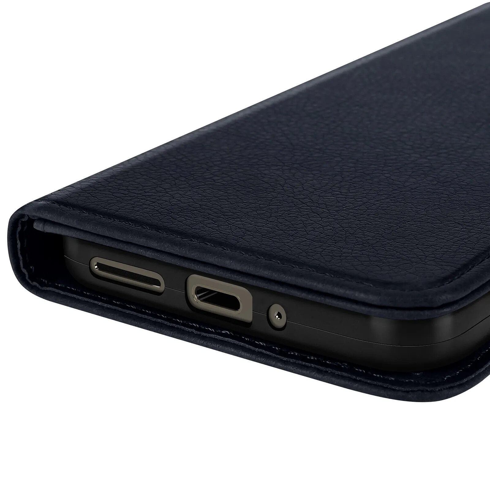 Protégez votre Pixel 9 Pro XL avec cet étui portefeuille série Chesterfield en similicuir grainé bleu nuit. Élégant et pratique, il intègre des compartiments pour cartes et billets ainsi qu'une fermeture magnétique sécurisée. La coque intérieure en silicone souple maintient fermement l'appareil tout en laissant accès aux boutons et connectiques. Fonction support vidéo incluse pour un confort d'utilisation optimal.