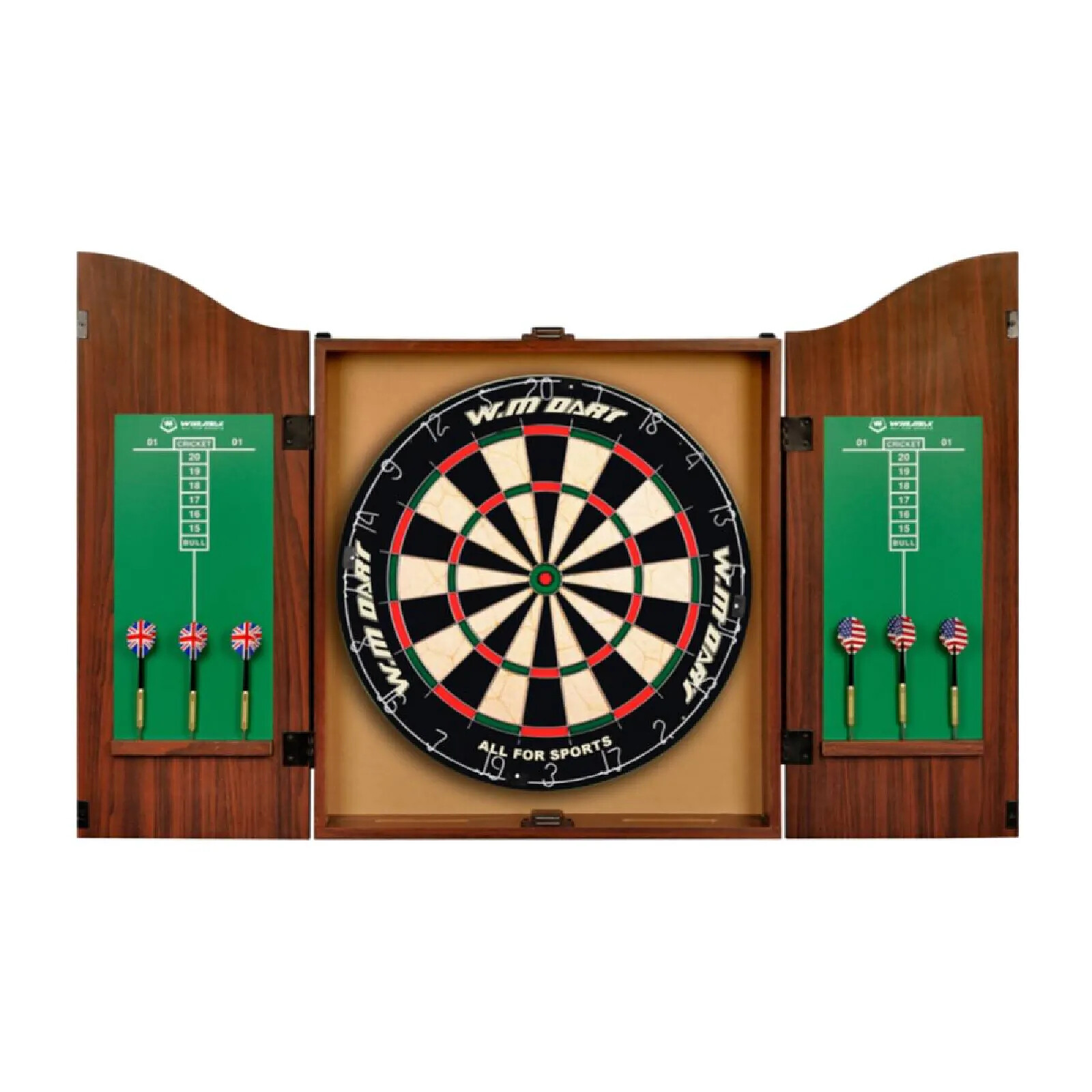 Découvrez ce jeu de fléchettes traditionnel conforme aux dimensions officielles idéal pour les fléchettes à pointe acier et conçu pour les compétitions. Il se fixe facilement au mur et dispose d'une numérotation rotative. Protégé dans une armoire à portes battantes, il apporte à la fois élégance et sécurité à votre intérieur. De plus, deux tableaux intérieurs effaçables permettent de suivre facilement vos scores.