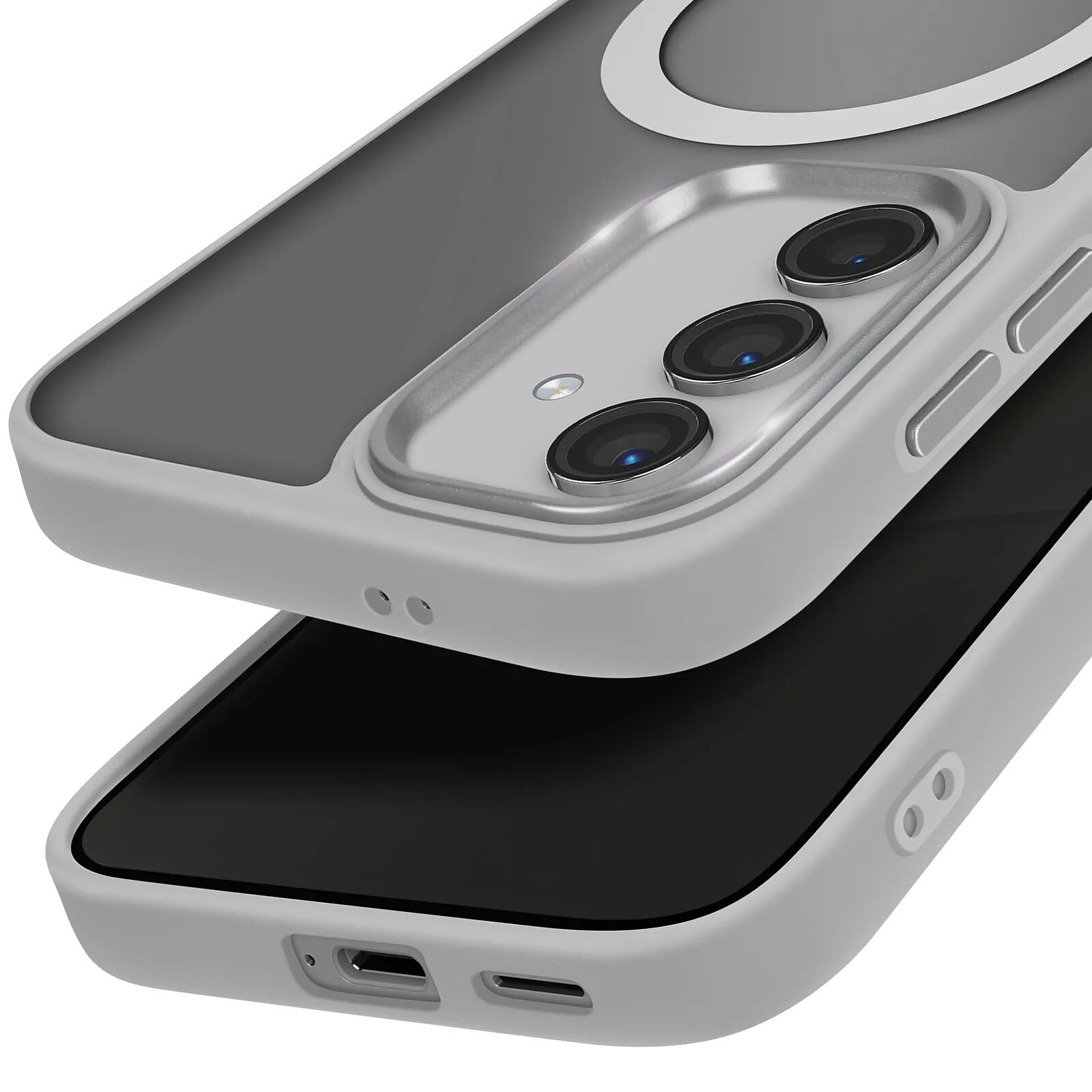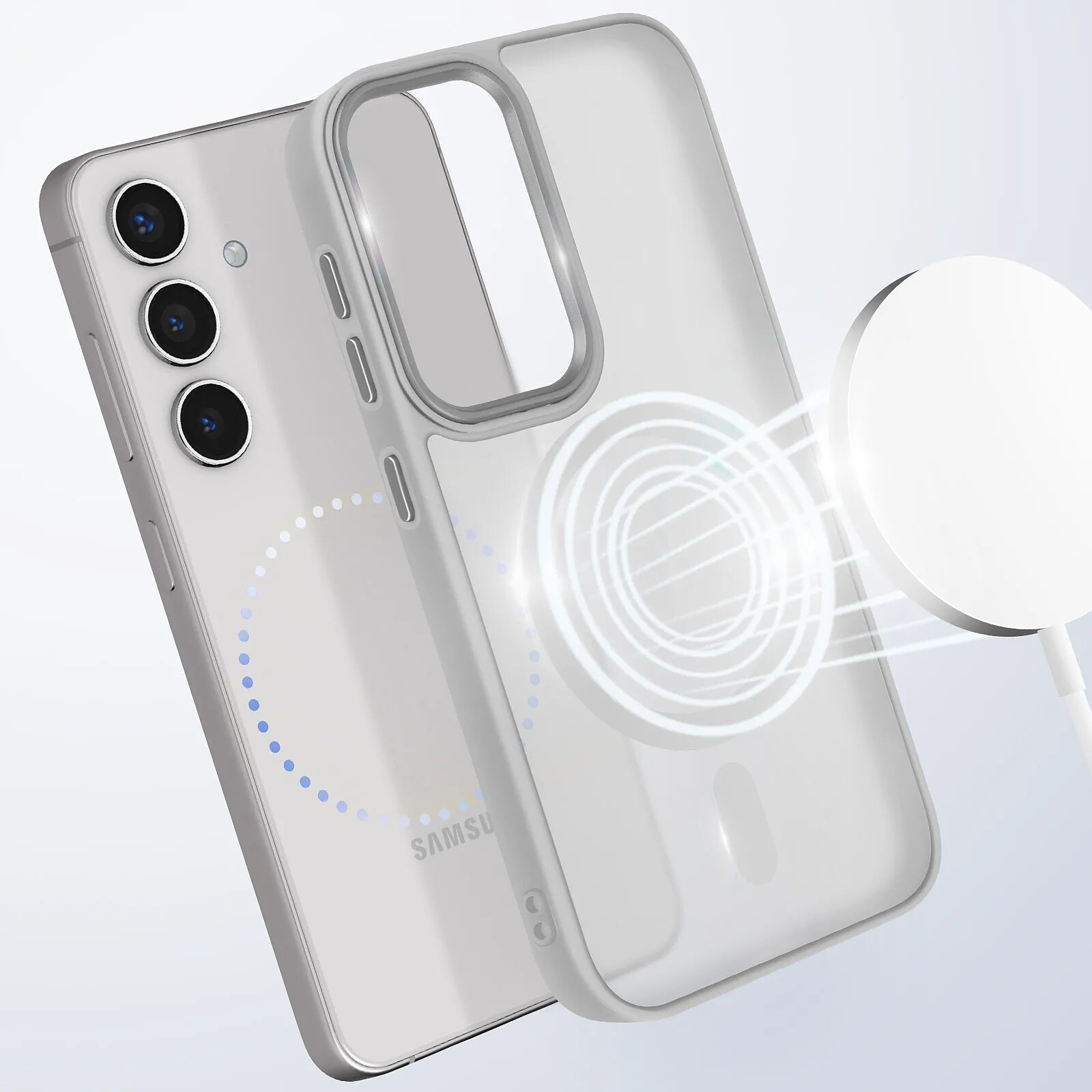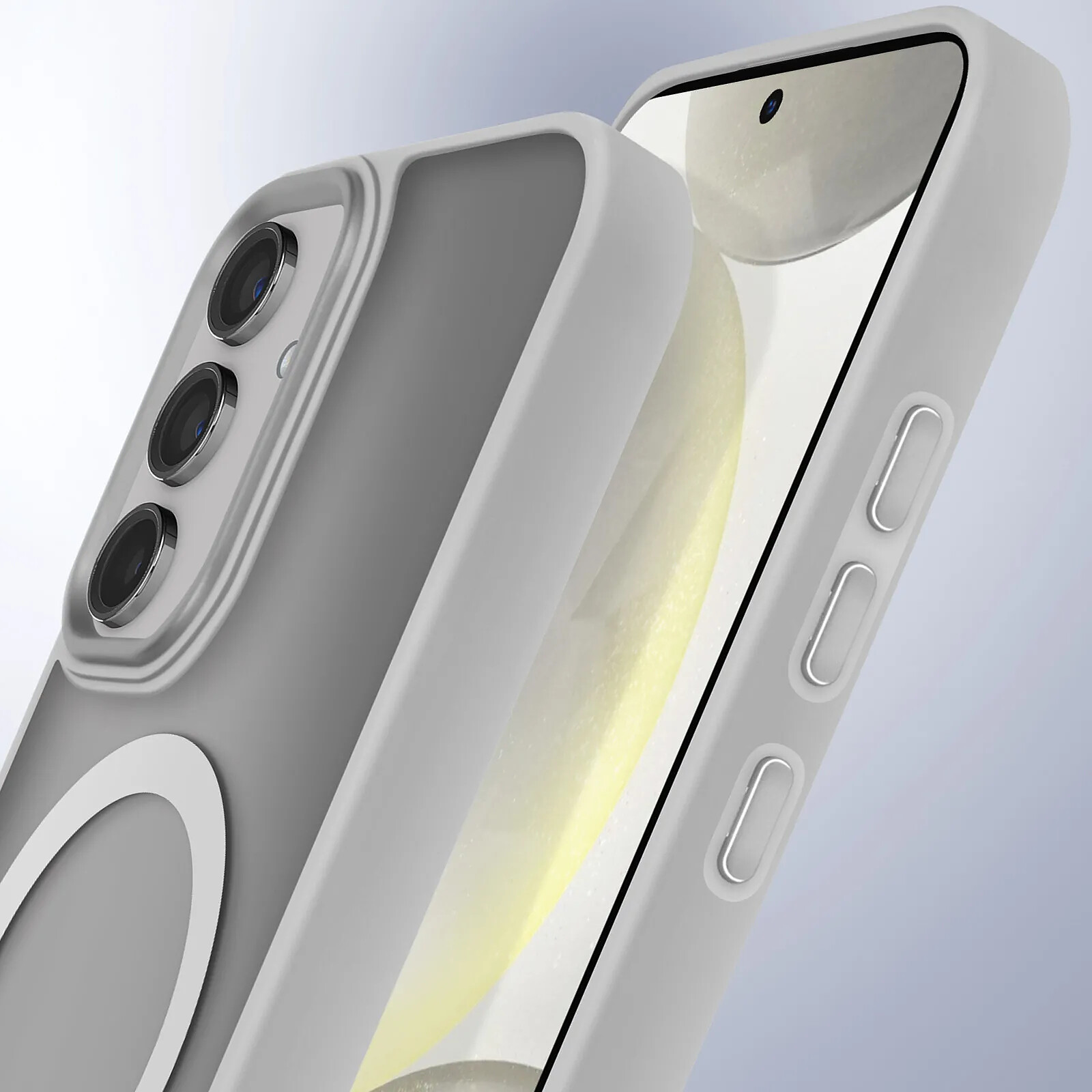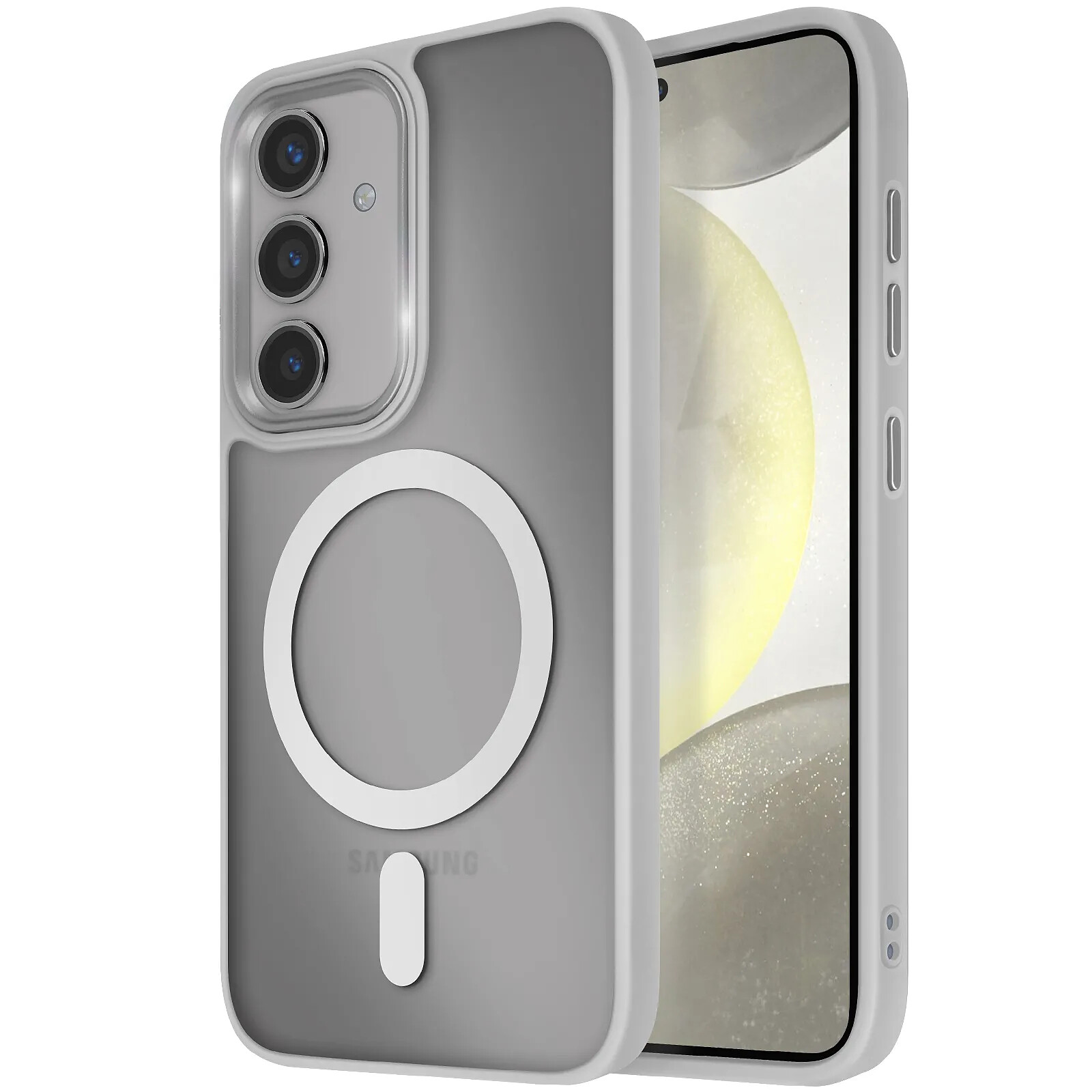 Avizar Coque MagSafe pour Samsung S24 Plus et S25 Plus Dos Mat Givré Contour Gris