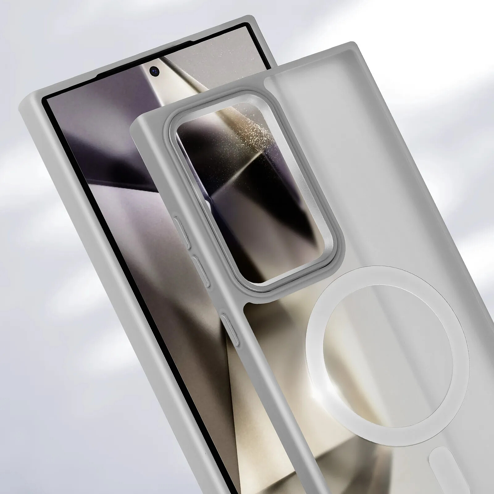 Avizar Coque MagSafe pour Samsung Galaxy S24 Ultra Dos Mat Givré Contour Gris