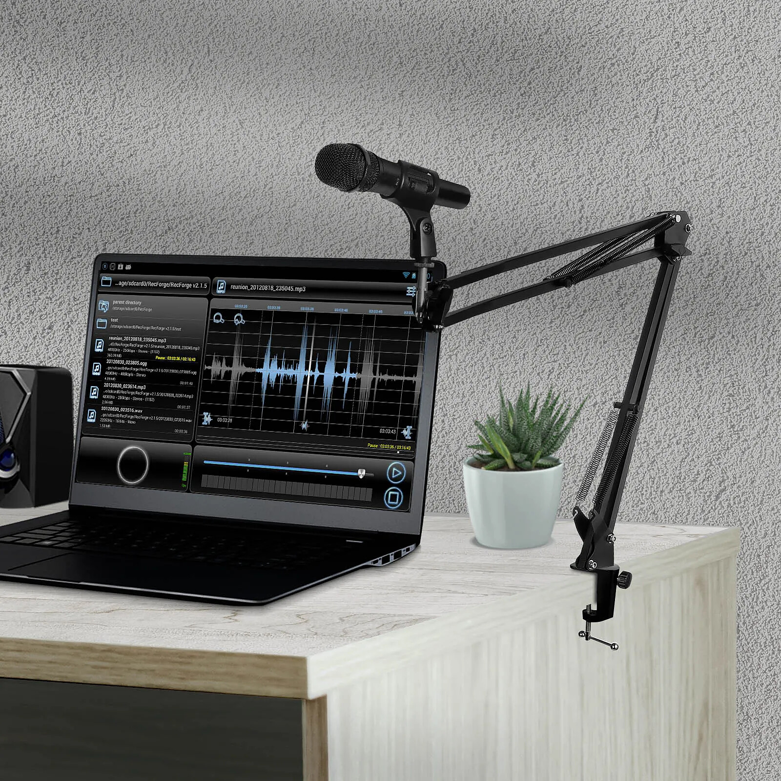 Ce bras de flèche articulé permet de fixer facilement votre micro à votre bureau.
