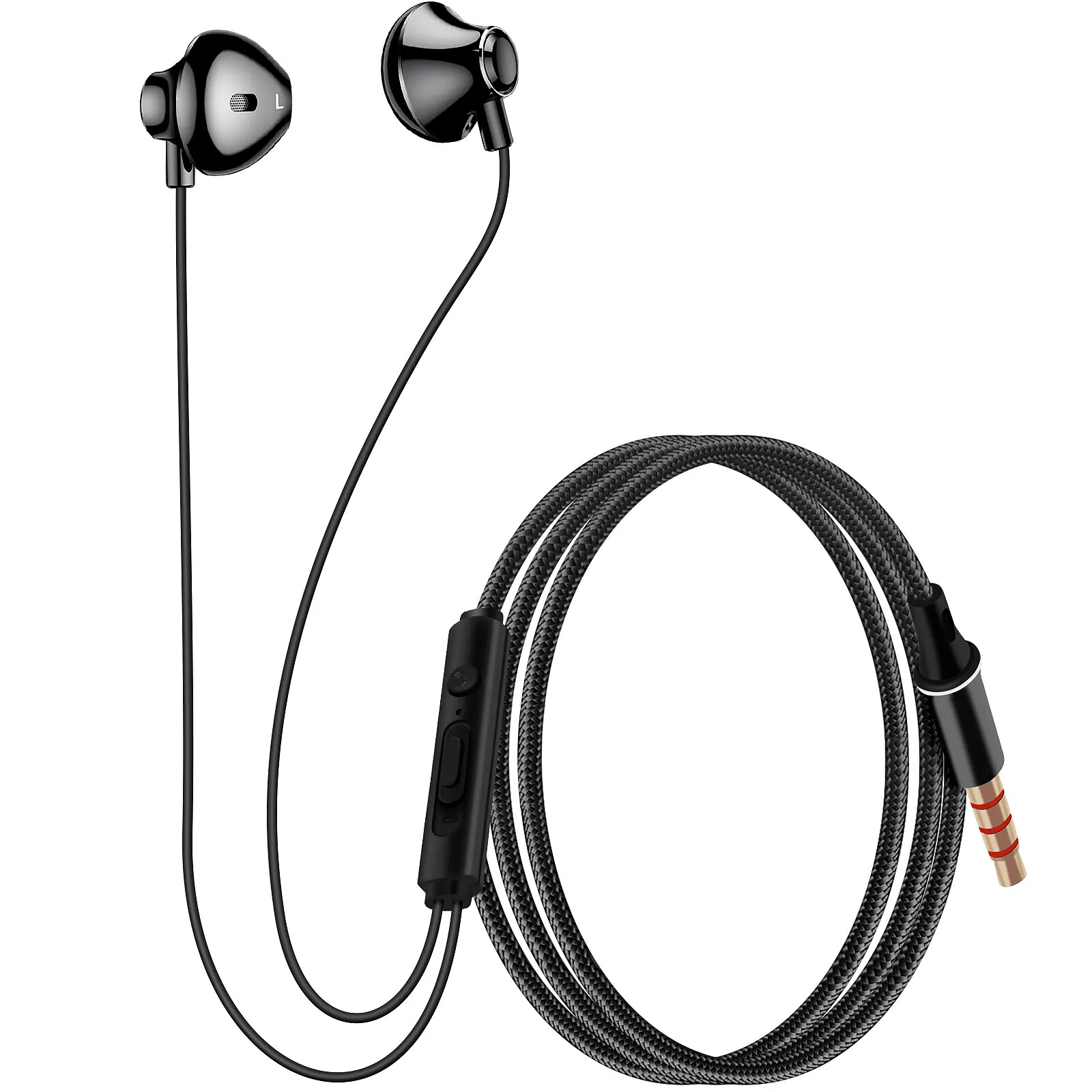 LinQ Écouteurs Nylon Tressé Intra-auriculaires Jack 3.5mm Kit mains libres Noir
