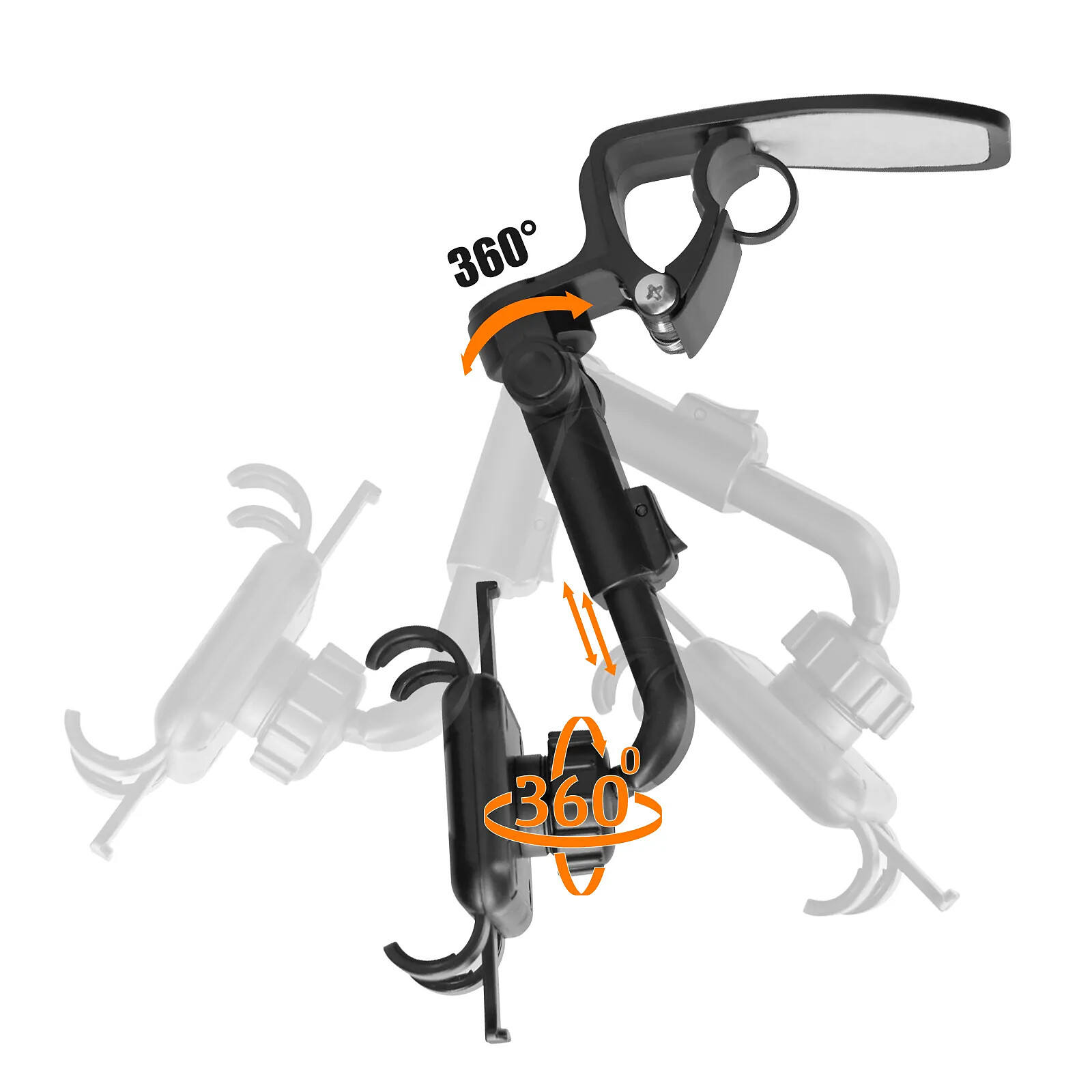 Support voiture HD1667 de LinQ. Fixation grille d'aération, pare-soleil ou volant. Rotatif à 360°, mode portrait ou paysage. Bras ajustable. Coussinet en caoutchouc. Pour smartphone d'une largeur comprise entre 67 à 92mm.