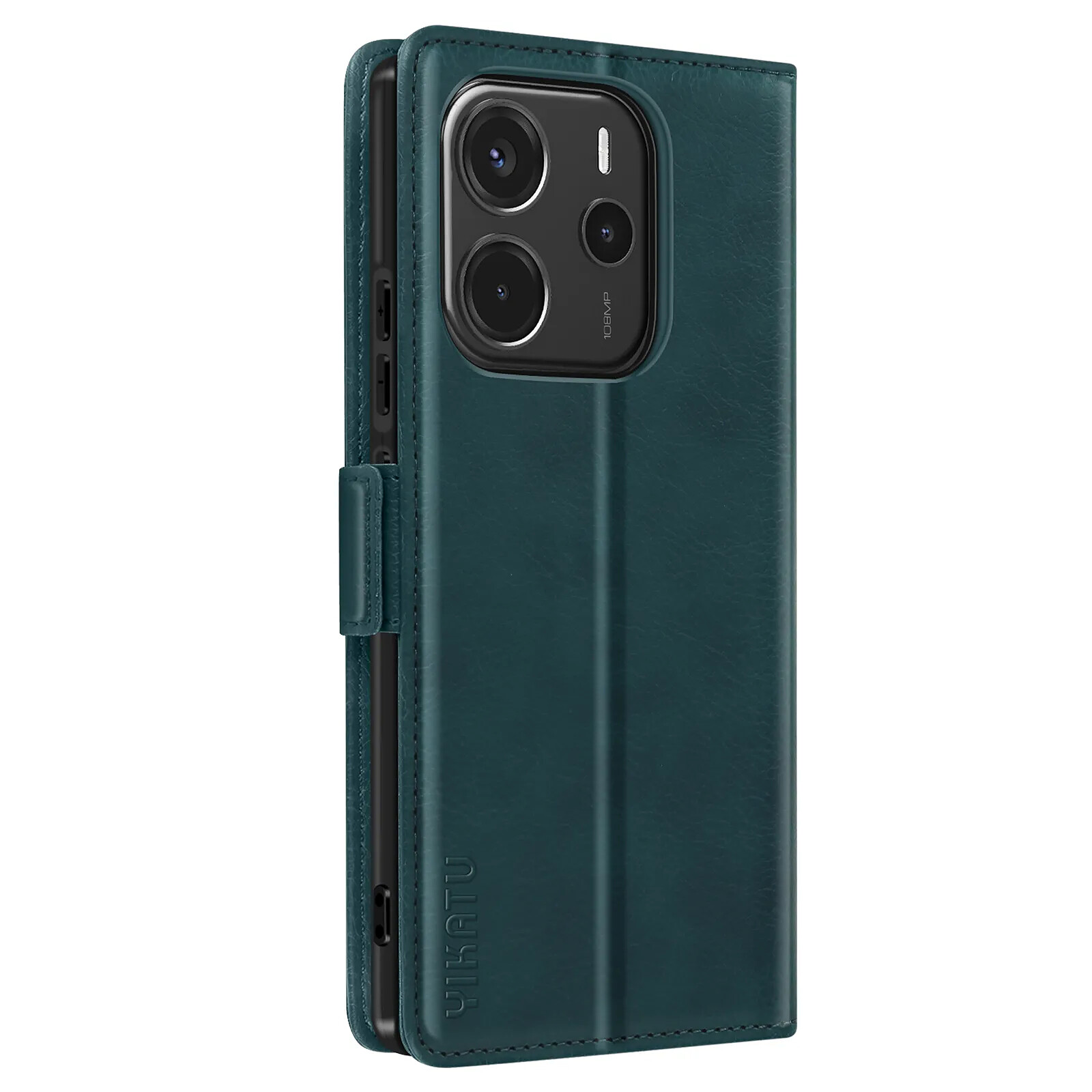 Étui pour Xiaomi Redmi Note 14 4G. Protection élégante avec bordures surélevées pour écran et caméra. Fonction support pliable. Compartiments pour cartes et billets intégrés. Découpes précises. Design ergonomique.